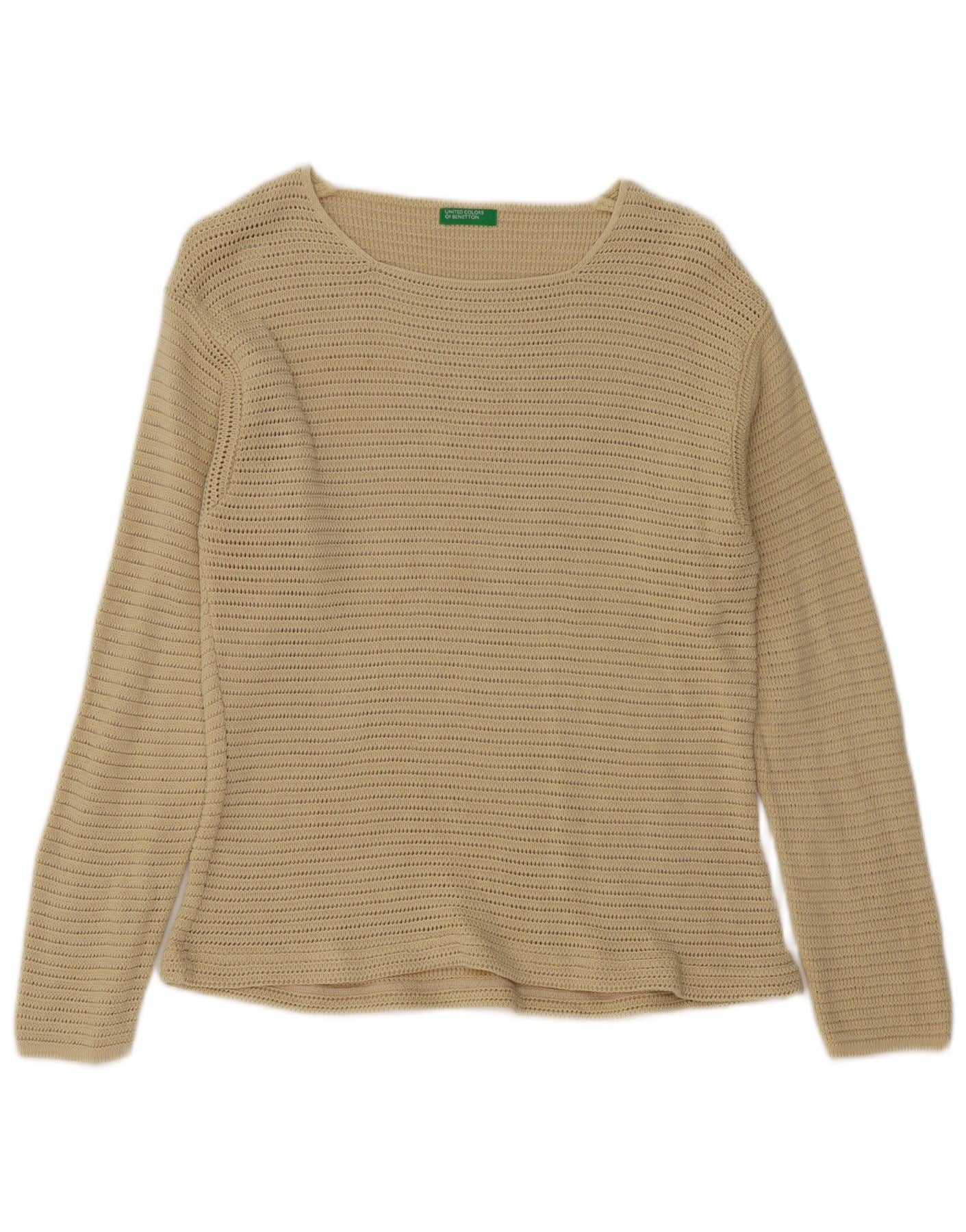 BENETTON Maglione da donna con scollo a barca all'uncinetto UK 12 Cotone beige medio