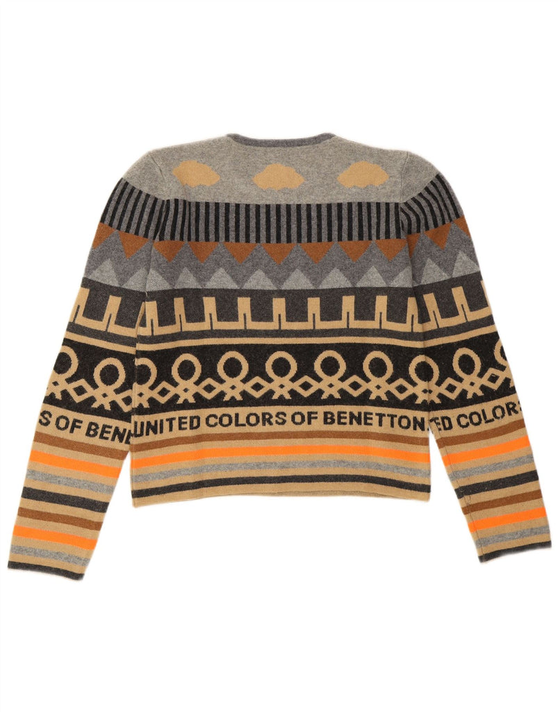 BENETTON Womens Crop Loose Fit Crew Neck Jumper Sweater UK 6 XS Grey