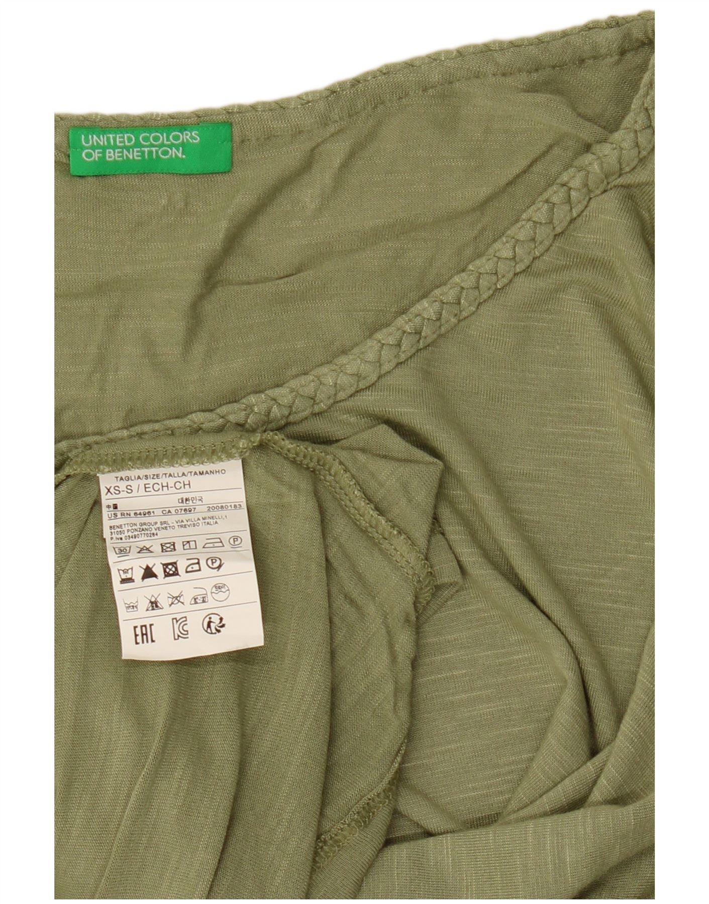 BENETTON T-shirt corta oversize da donna Top UK 6 XS Viscosa screziata kaki