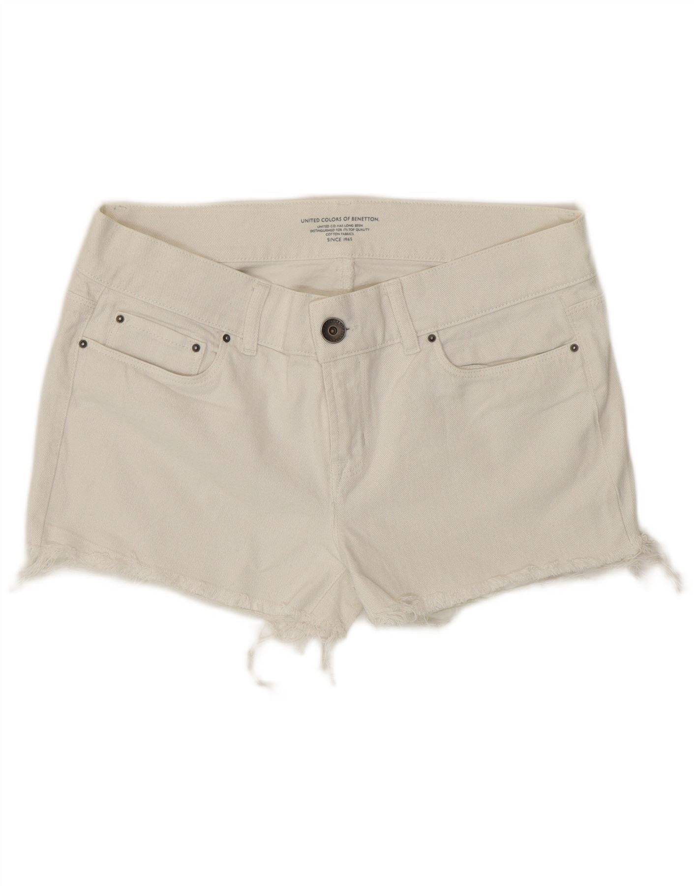 - Descrizione dell'IA: Questi shorts in denim da donna United Colors Of Benetton sono realizzati in denim di cotone bianco sporco. Presentano una vestibilità regolare e una chiusura con bottoni. Il design include pratiche tasche e una finitura invecchiata. Il colore pulito e il taglio classico offrono uno stile versatile per l'abbigliamento casual.