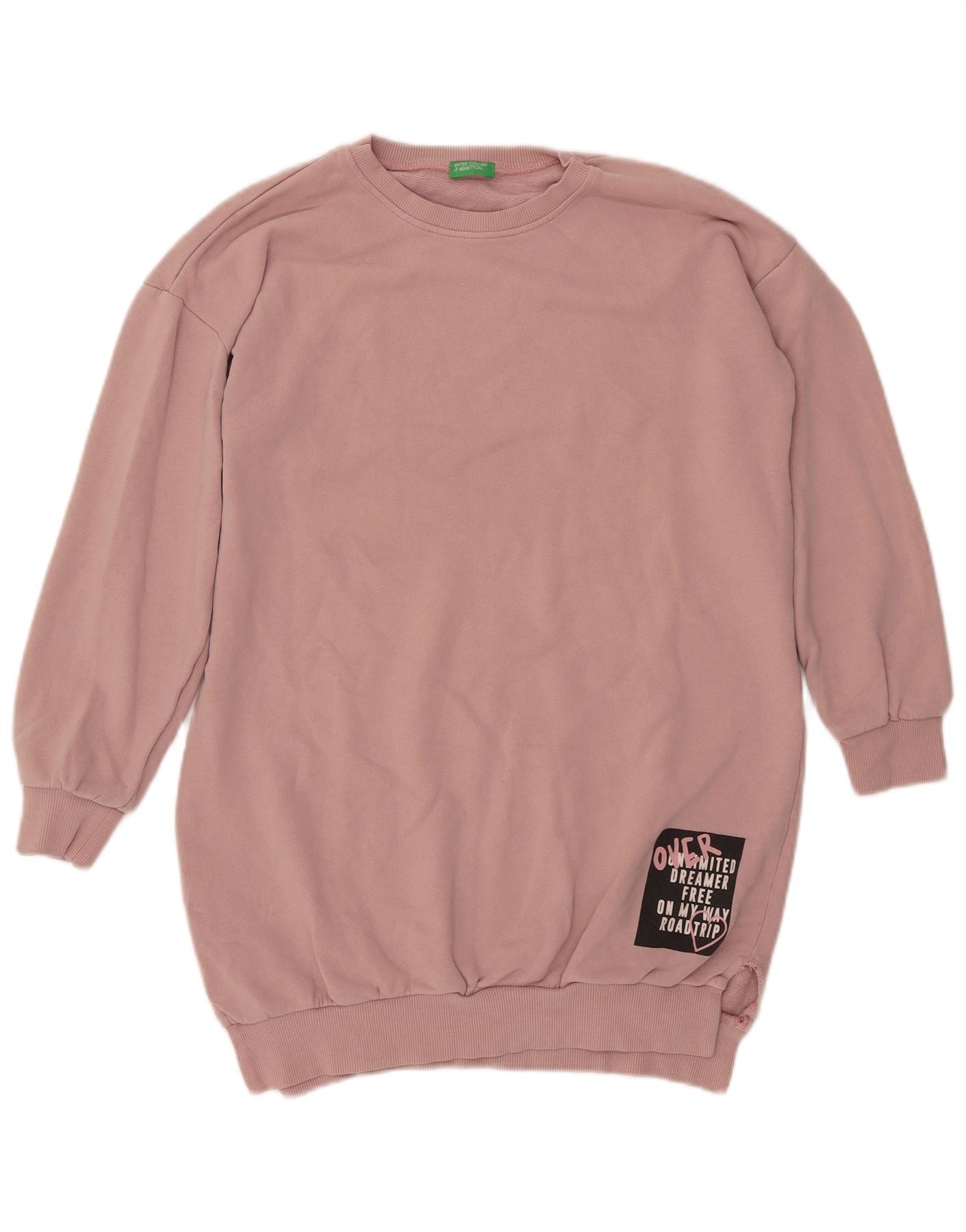BENETTON Felpa con grafica da donna Maglione UK 16 Large Rosa