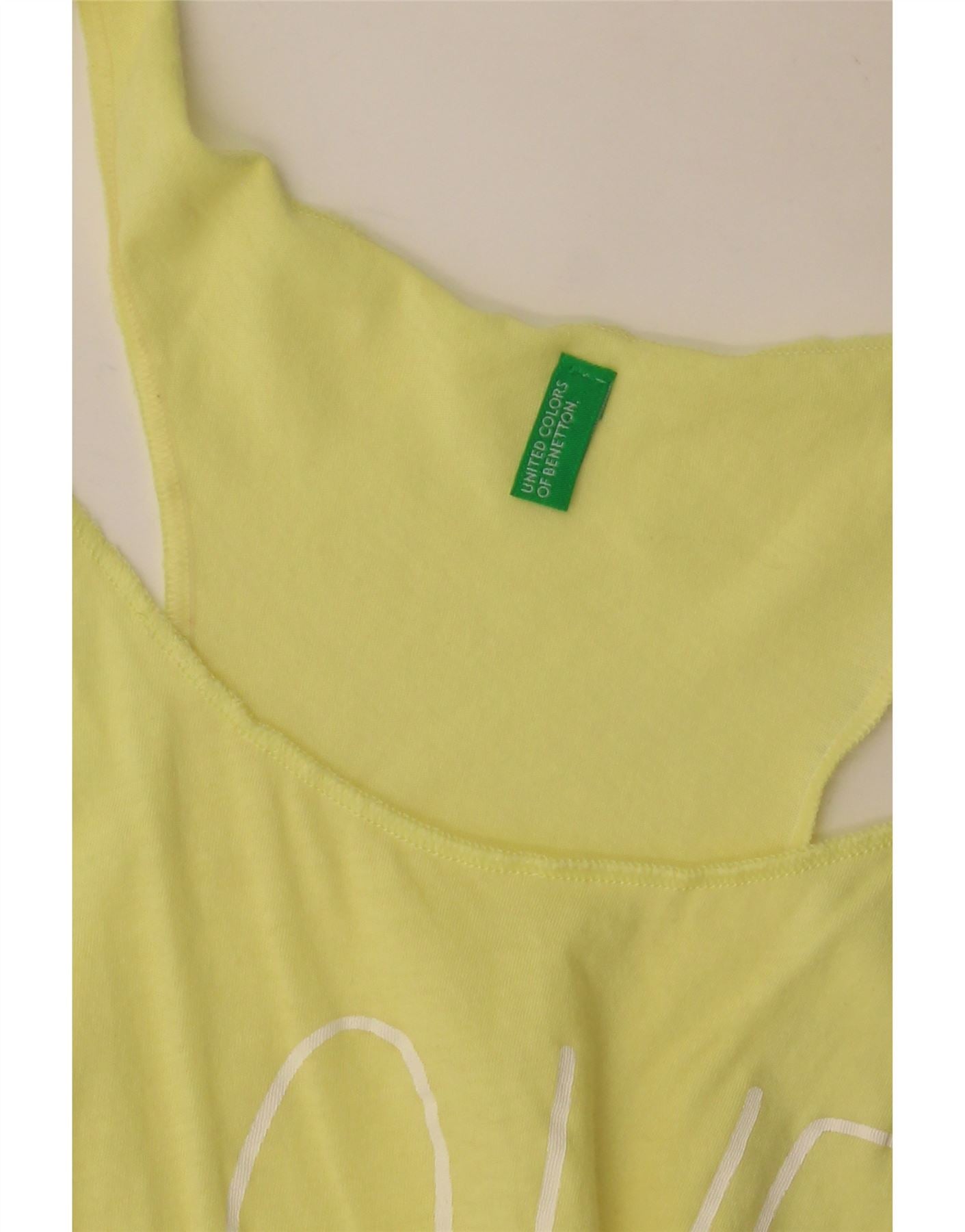 BENETTON Top tunica grafica da donna UK 8 Small Yellow Colourblock Beach