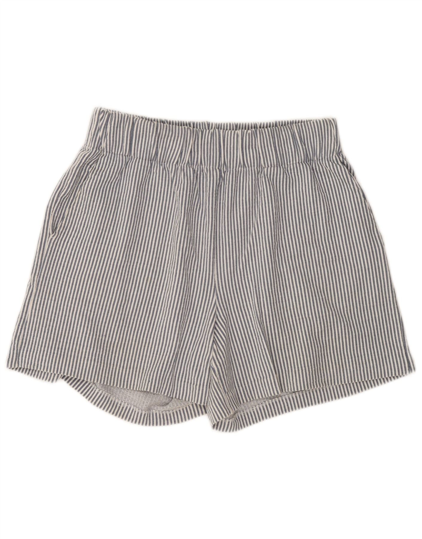 Pantaloncini a vita alta da donna Benetton medi W30 cotone gessato blu