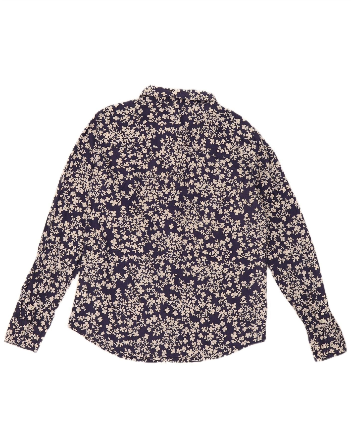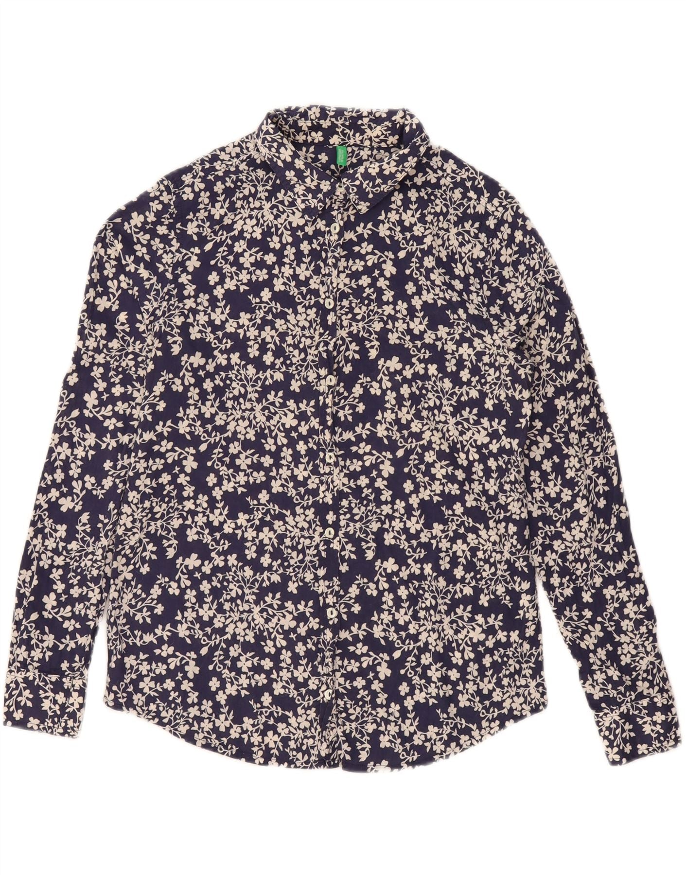 Camicia oversize da donna BENETTON UK 10 piccola in cotone floreale blu navy
