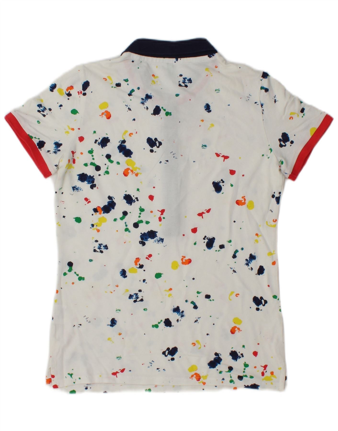 Home > Abbigliamento Benetton vintage > Da donna > Polo da donna Benetton UK 10 piccola in cotone screziato bianco