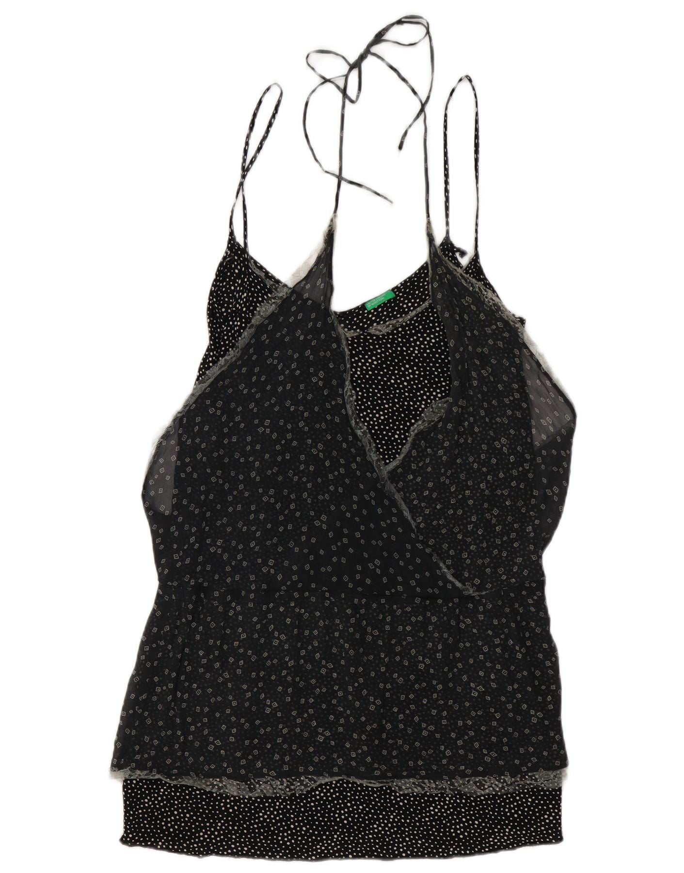 BENETTON Camicetta senza maniche da donna UK 10 piccola nera maculata