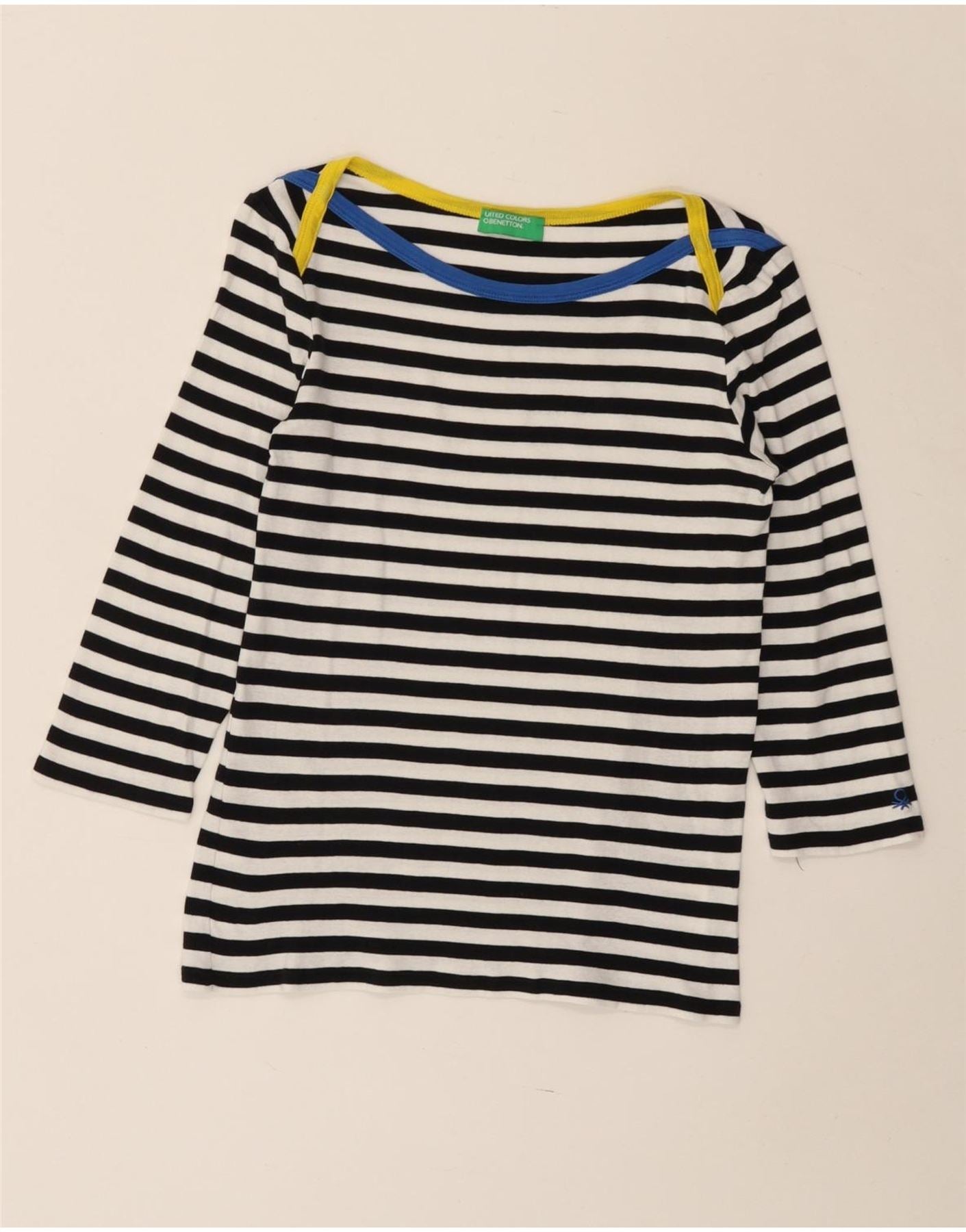 Top da donna Benetton manica 3/4 UK 8 Small blu navy a righe