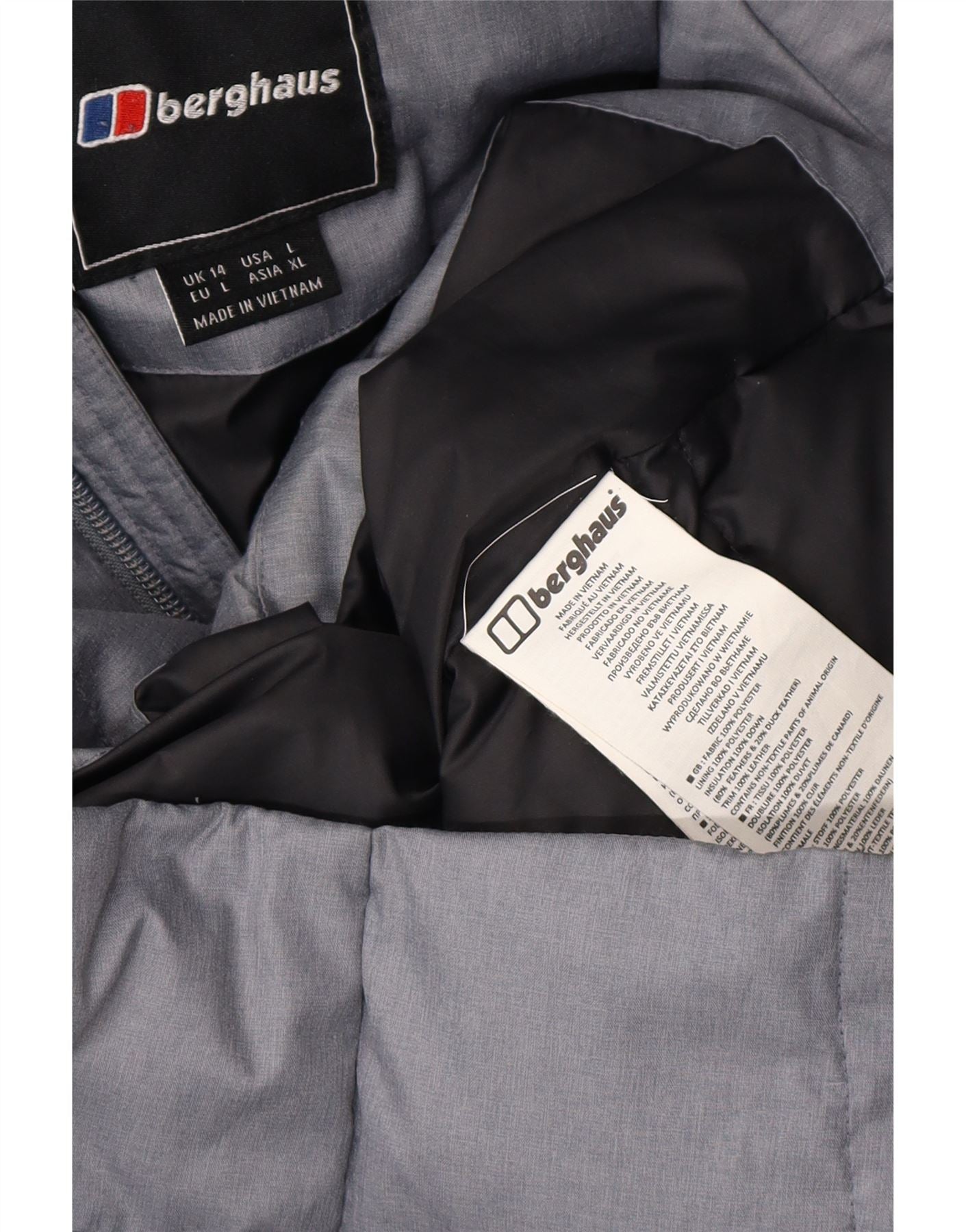 - AI Description: This Berghaus womens padded coat is crafted from durable grey polyester, featuring a quilted down and feather fill for warmth. It boasts a high neck and a practical hood with a fur trim. Long sleeves provide full coverage. The regular fit ensures comfort and ease of movement. A button closure secures the front, complemented by convenient zipped pockets. This winter coat offers essential warmth and a classic, functional design.