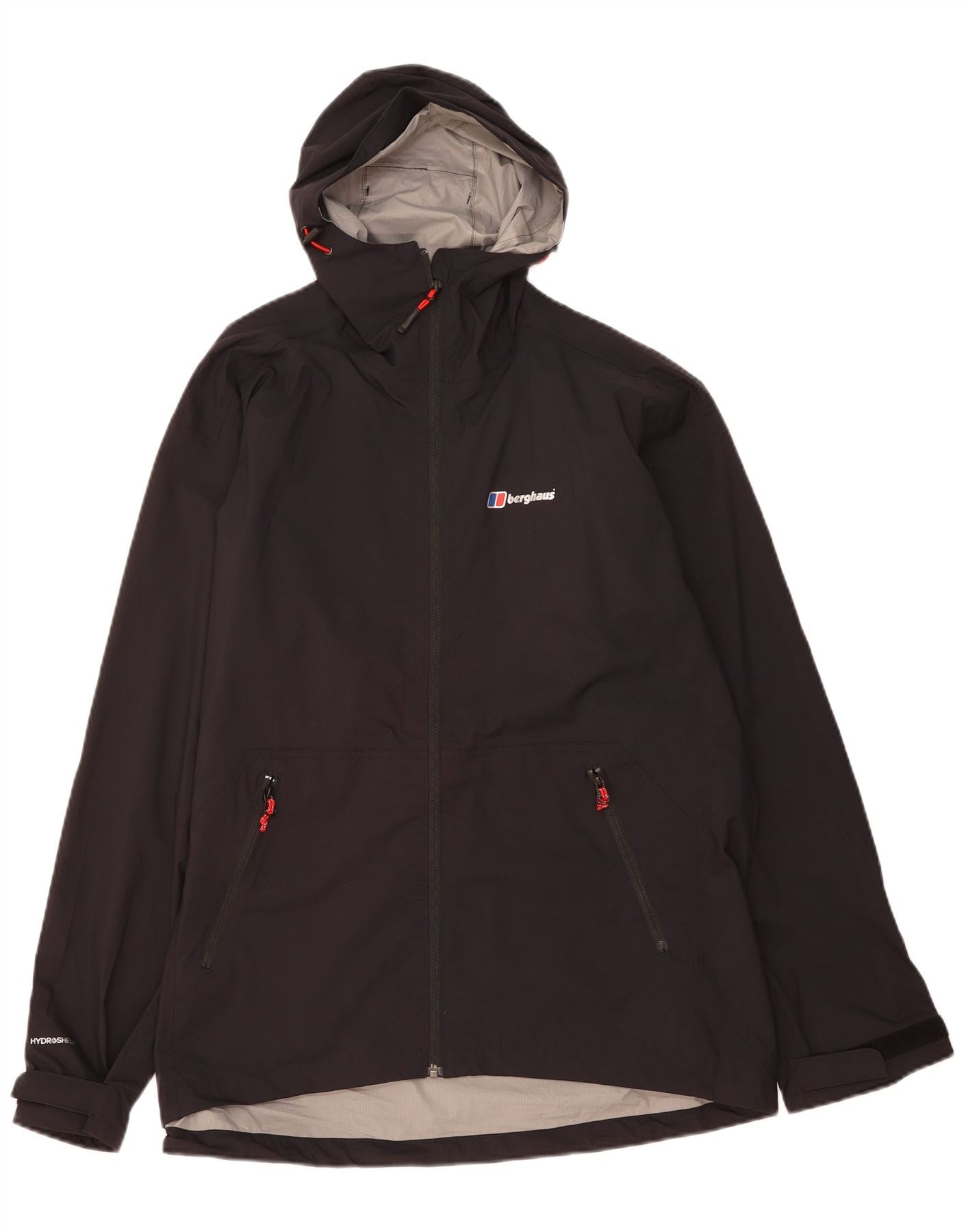 BERGHAUS Mens Hooded Rain Jacket UK 42 XL Black Polyamide