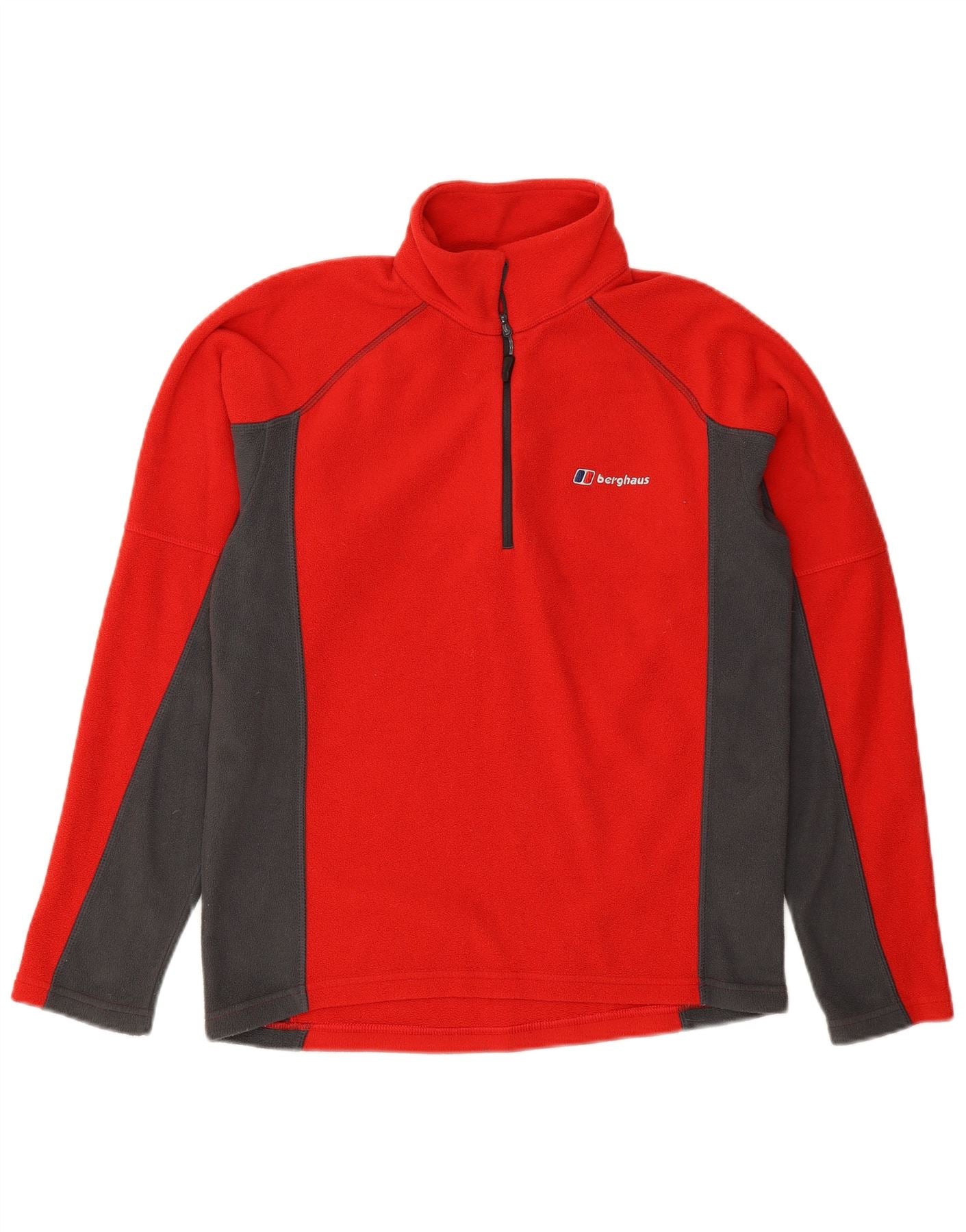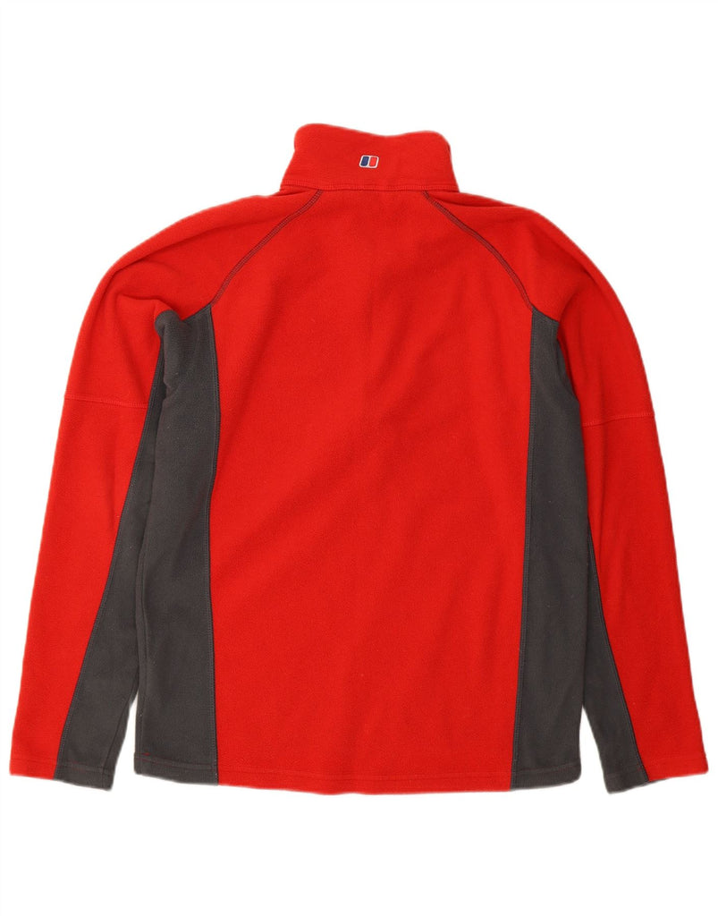 BERGHAUS Mens Zip Neck Fleece Jumper Small Red Colourblock Polyester
