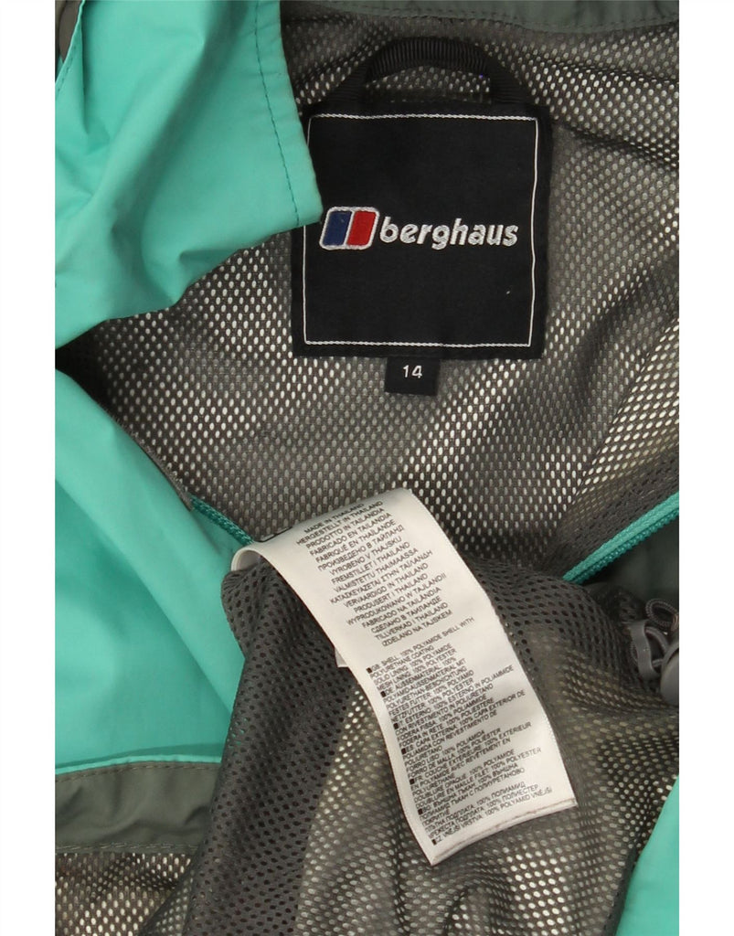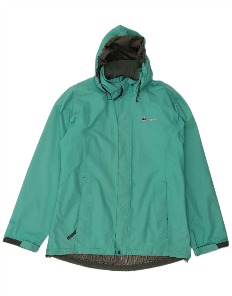 BERGHAUS Womens Hooded Rain Jacket UK 14 Large Turquoise Polyamide