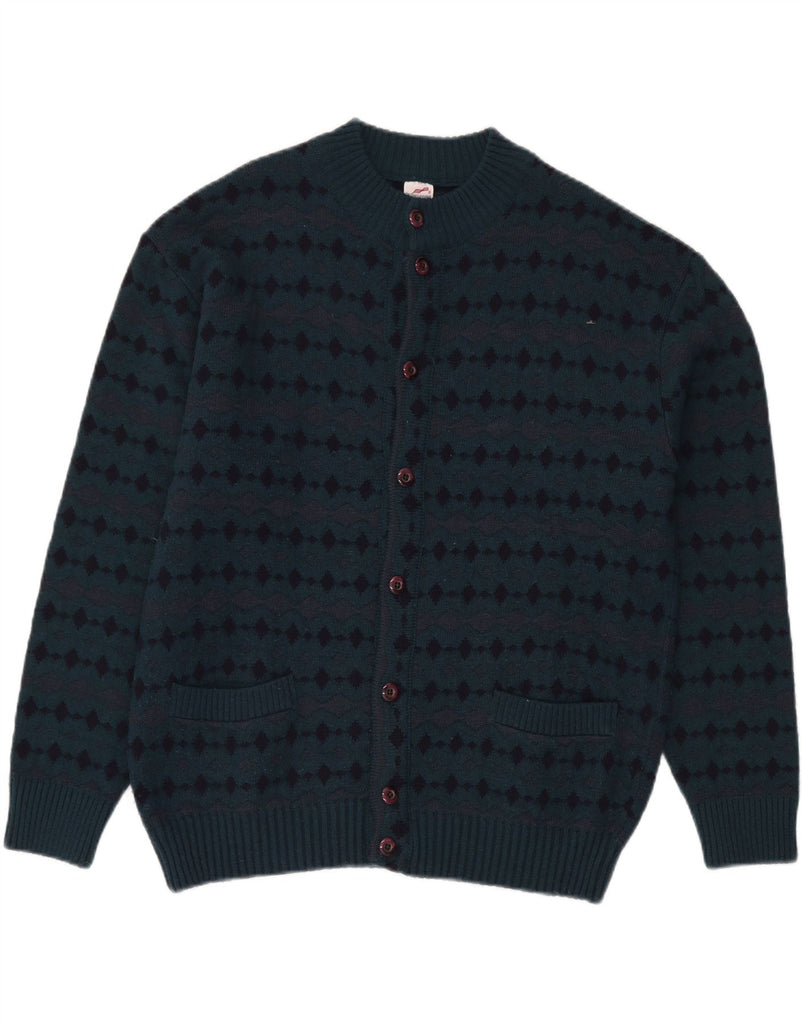 BERNARDINI Maglione cardigan da uomo blu medio a rombi/lana diamante