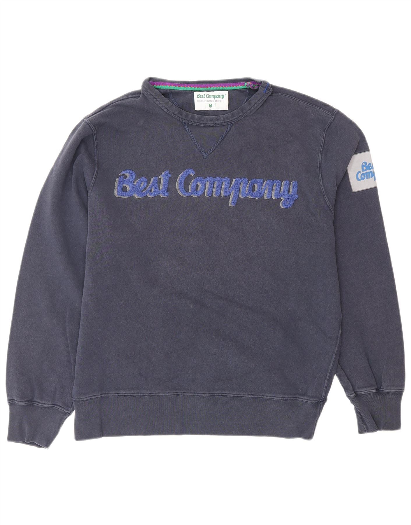 BEST COMPANY Mens Graphic Sweatshirt Jumper Medium Navy Blue