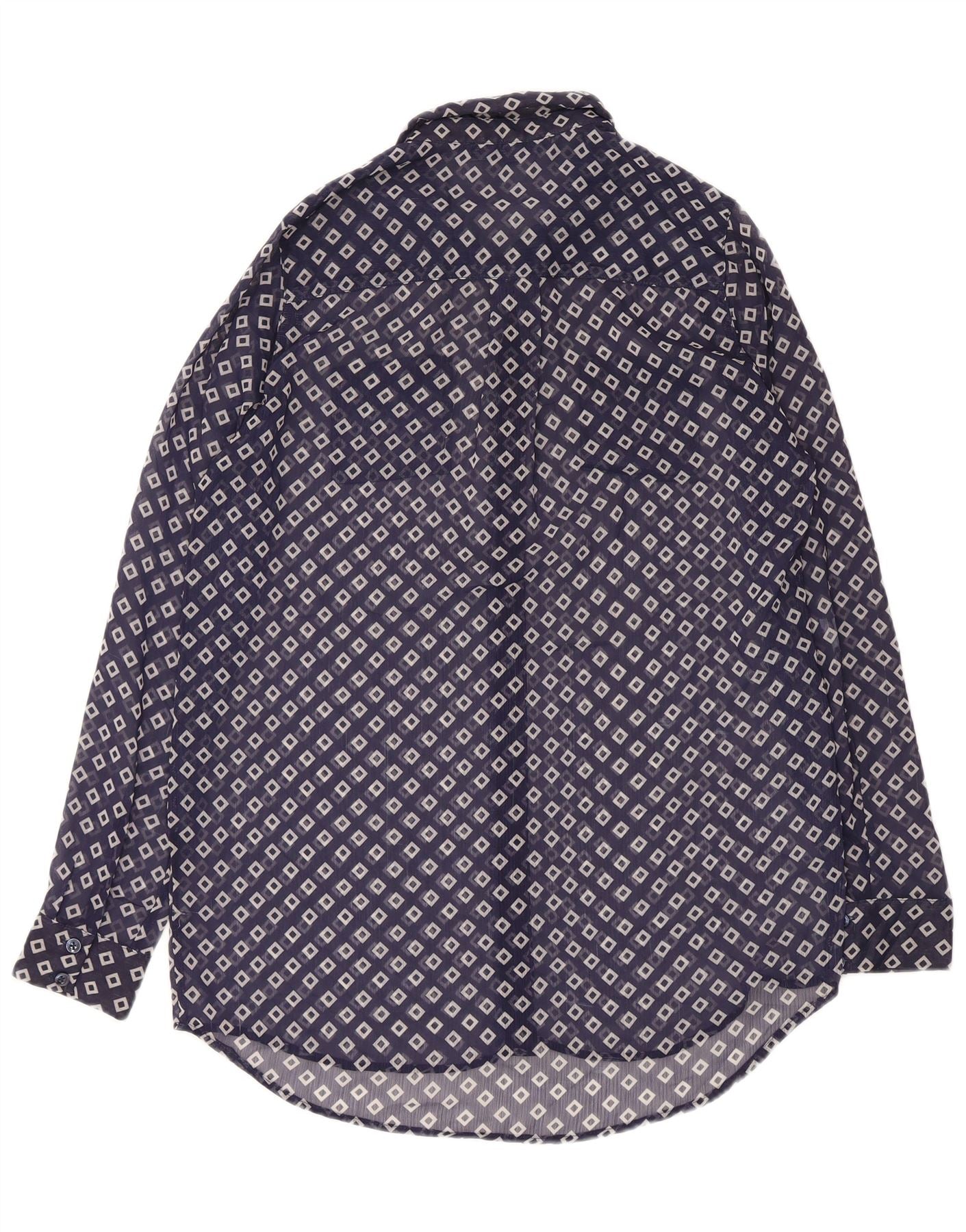 - Descrizione dell'IA: Questa camicetta da donna Best Company è realizzata in chiffon blu navy trasparente, che offre una trama leggera e trasparente. Presenta un sorprendente motivo geometrico ovunque. I bottoni tonali assicurano la chiusura frontale. Lo scollo con colletto e le maniche lunghe forniscono una silhouette classica. Due tasche sul petto aggiungono dettagli pratici. Una vestibilità regolare garantisce un'usura confortevole.