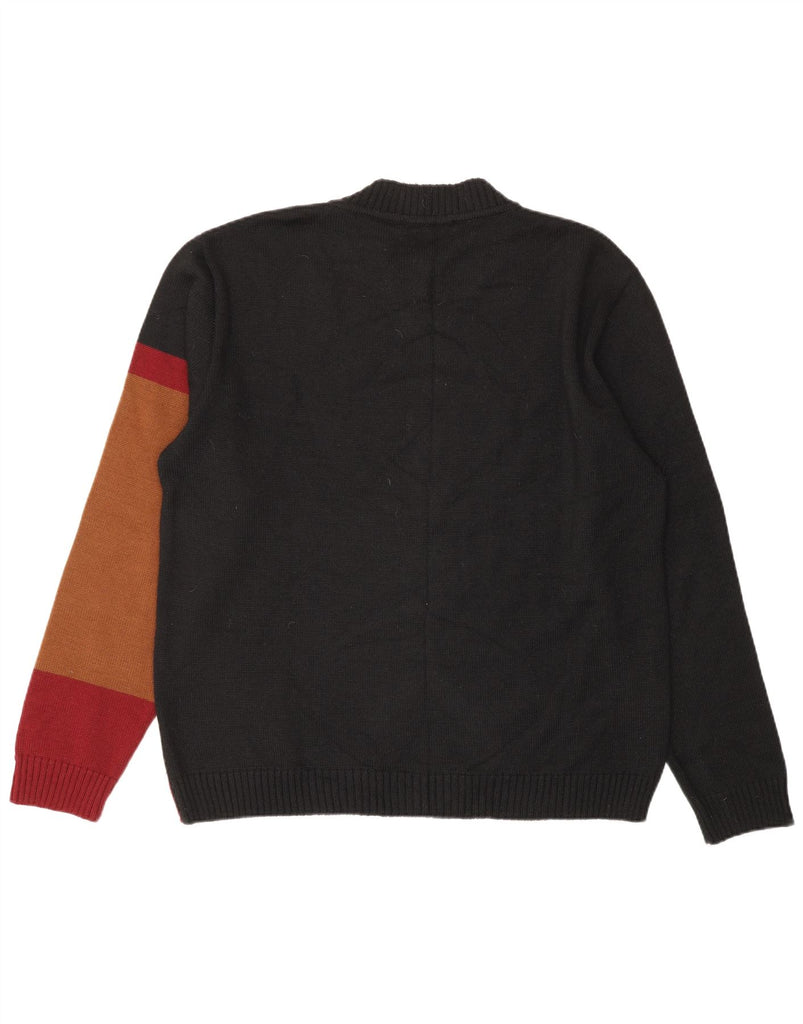 BIKKEMBERGS Mens Crew Neck Jumper Sweater 2XL Black Colourblock Wool
