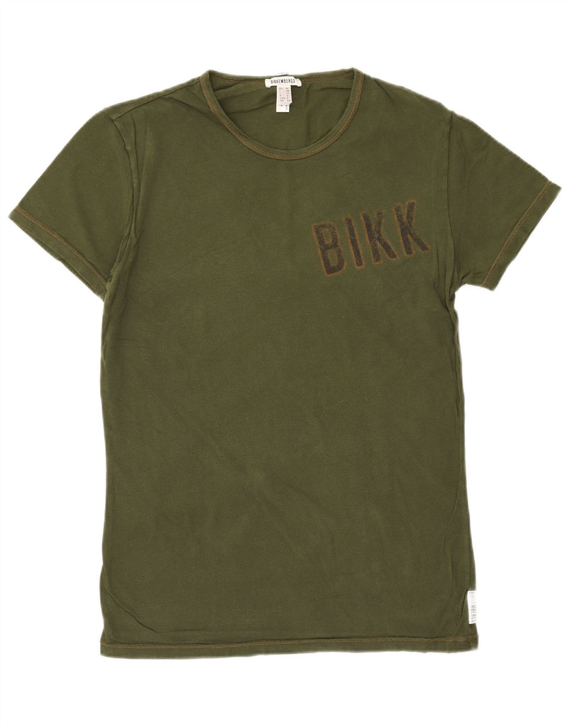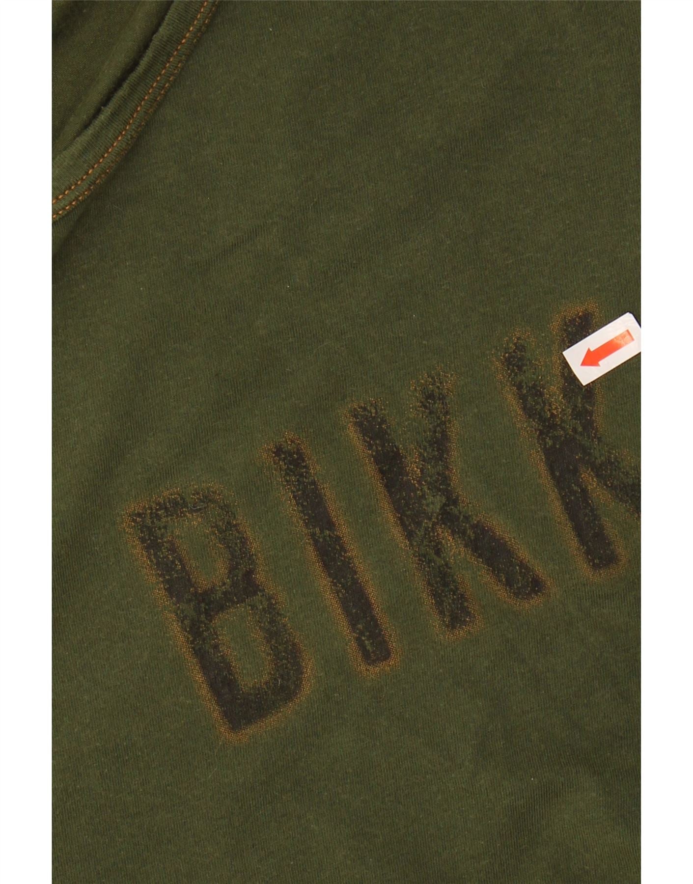 BIKKEMBERGS Mens Graphic T-Shirt Top Medium Khaki Cotton