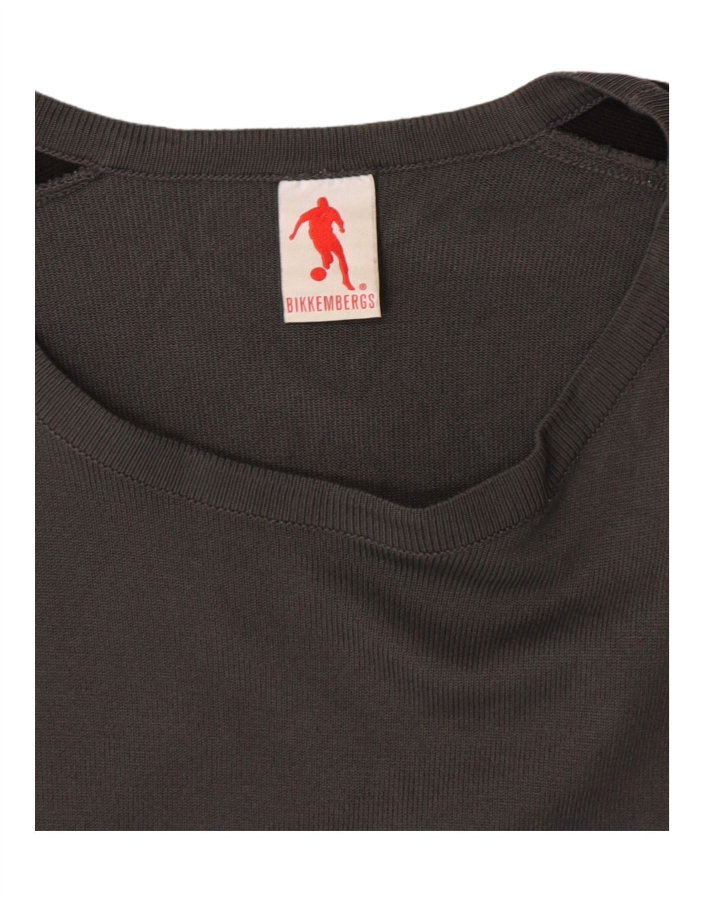 BIKKEMBERGS Womens Boat Neck Jumper Sweater UK 14 Medium Grey Colourblock