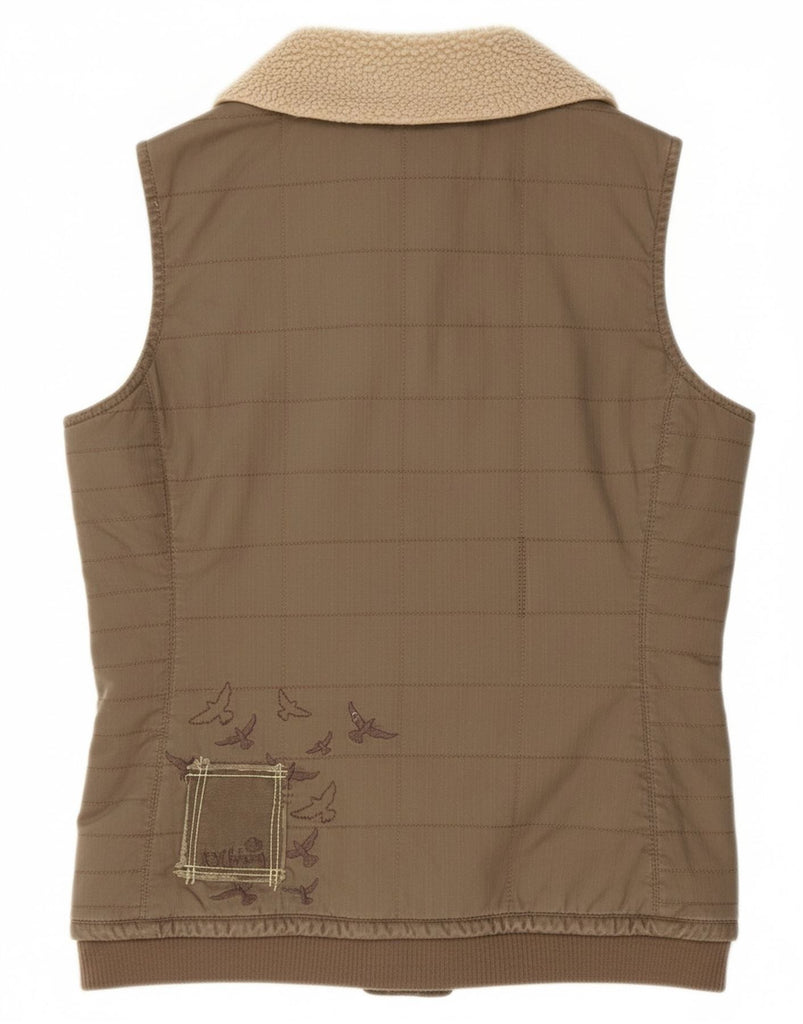 - AI Description: This Billabong womens waistcoat presents a sophisticated look in khaki woven cotton. It features a smart collared neckline and a neat button-up front. The sleeveless design ensures versatile layering. A quilted polyester lining provides warmth and subtle texture. Functional pockets add practicality. This regular fit waistcoat is fully lined and includes an adjustable back, ensuring a comfortable, tailored silhouette.