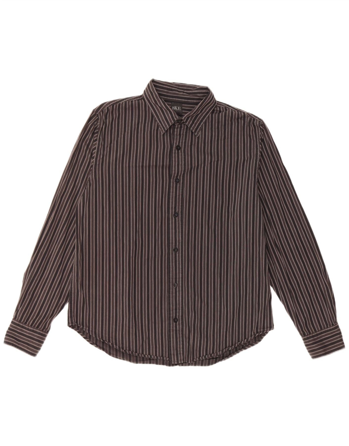 Camicia da uomo BKE grande in cotone a righe nere