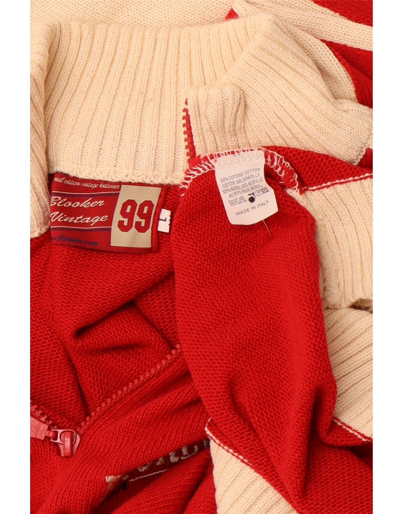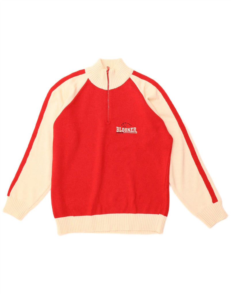 BLOOKER Maglione da uomo con zip e collo grande in cotone color block rosso