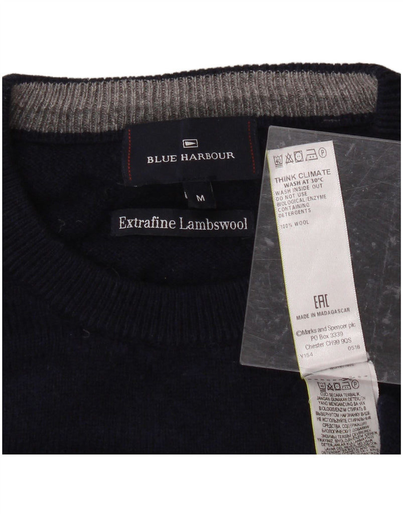 BLUE HARBOUR Mens Crew Neck Jumper Sweater Medium Navy Blue Lambswool