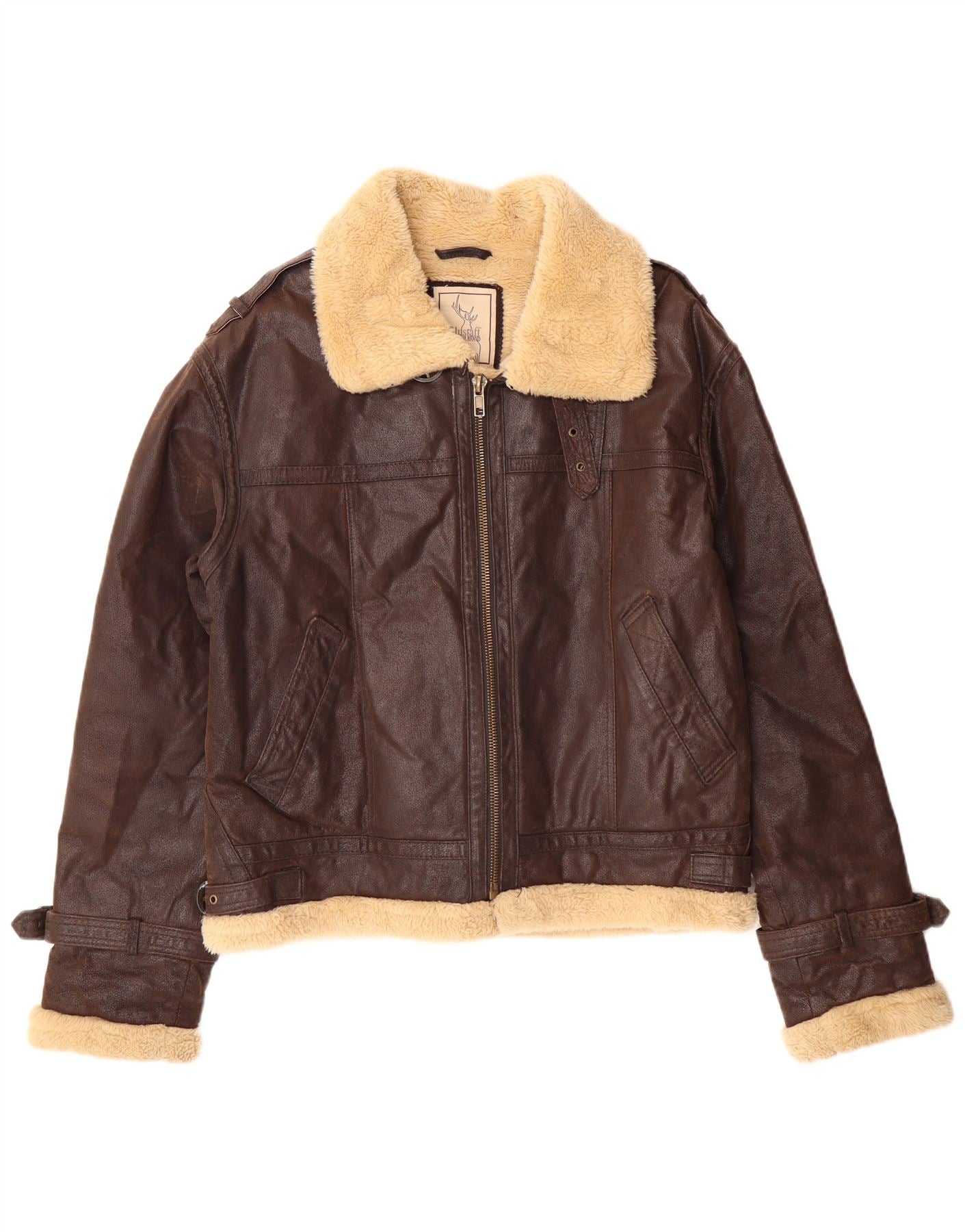 Giubbotto in shearling da donna BLUSTAFF UK 16 grande in pelle marrone