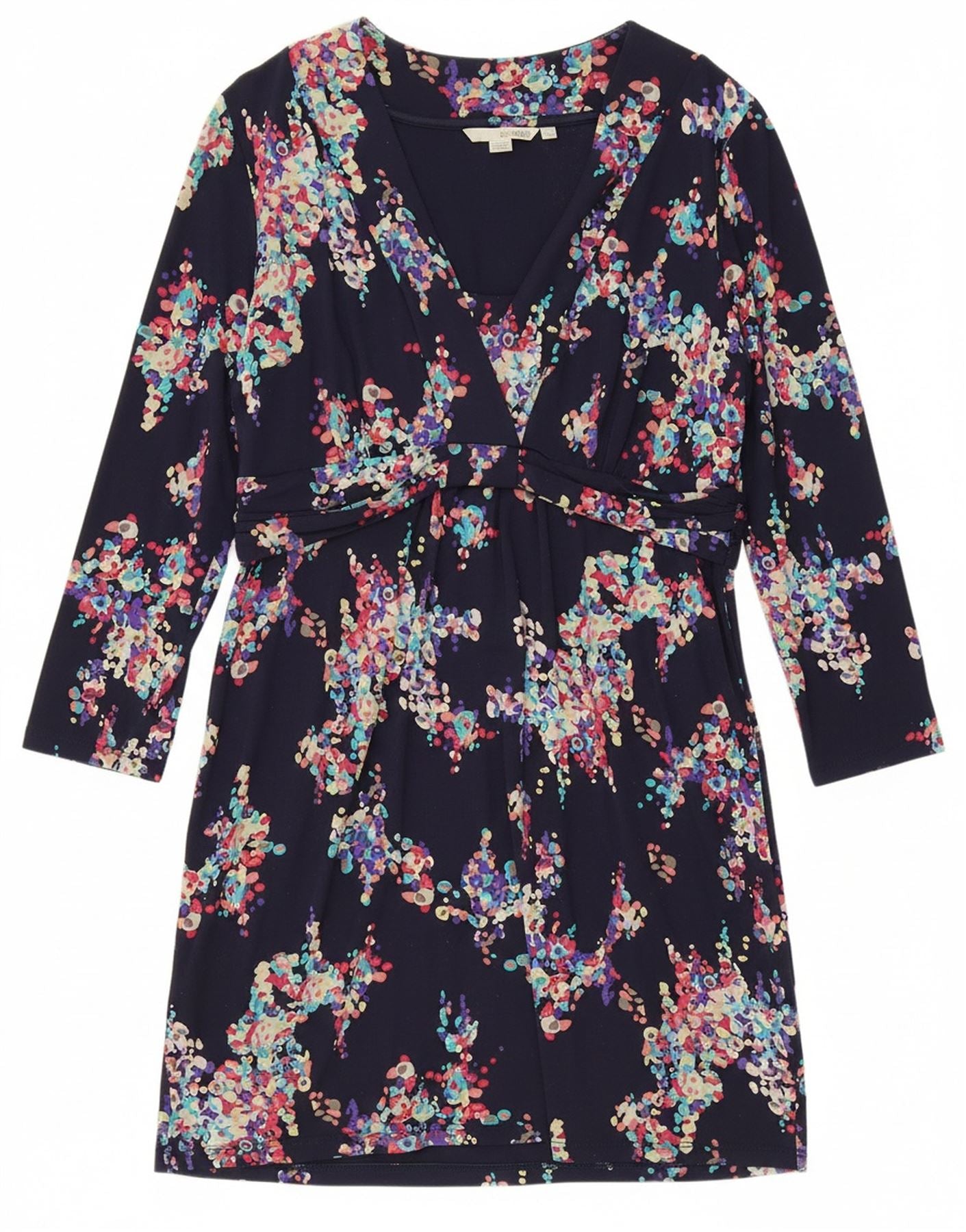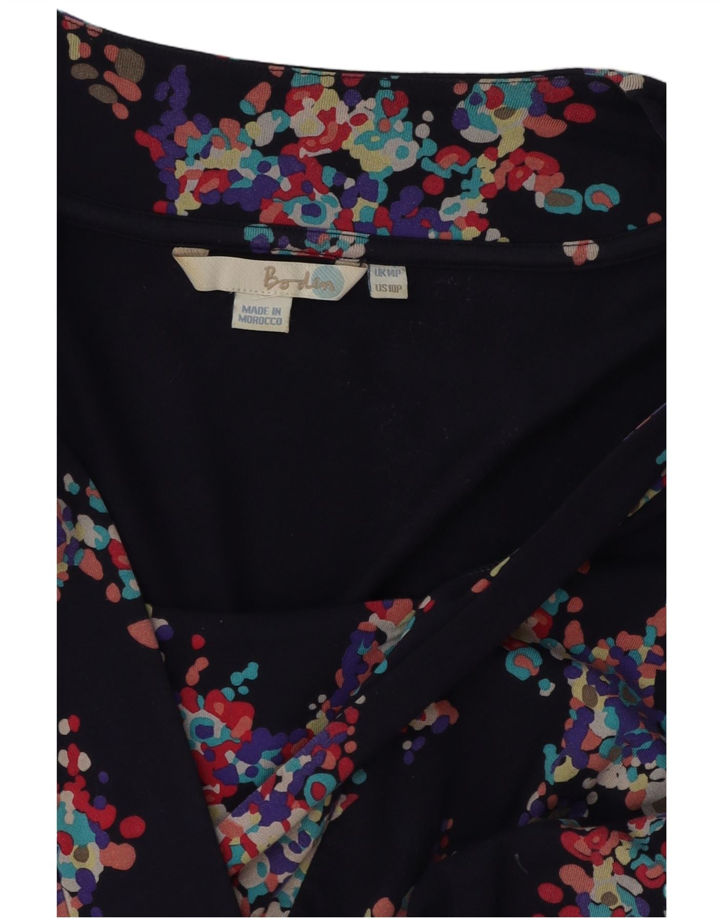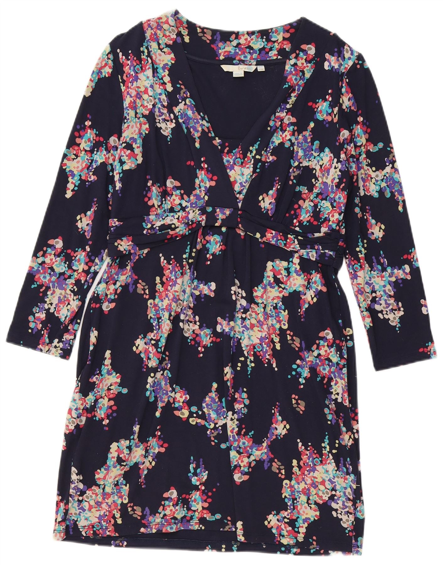 BODEN Womens Petite 3/4 Sleeve Basic Dress UK 14 Large Navy Blue Floral