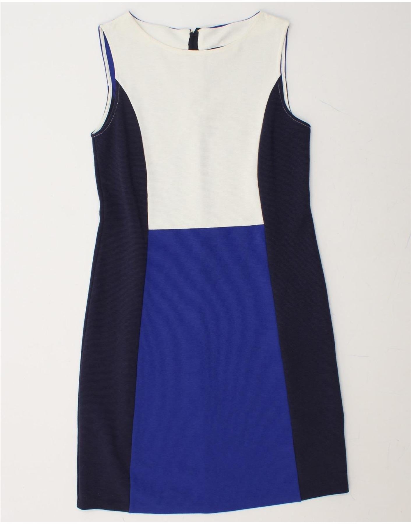 BODEN Womens Sleeveless Sheath Dress UK 12 Medium Blue Colourblock Cotton