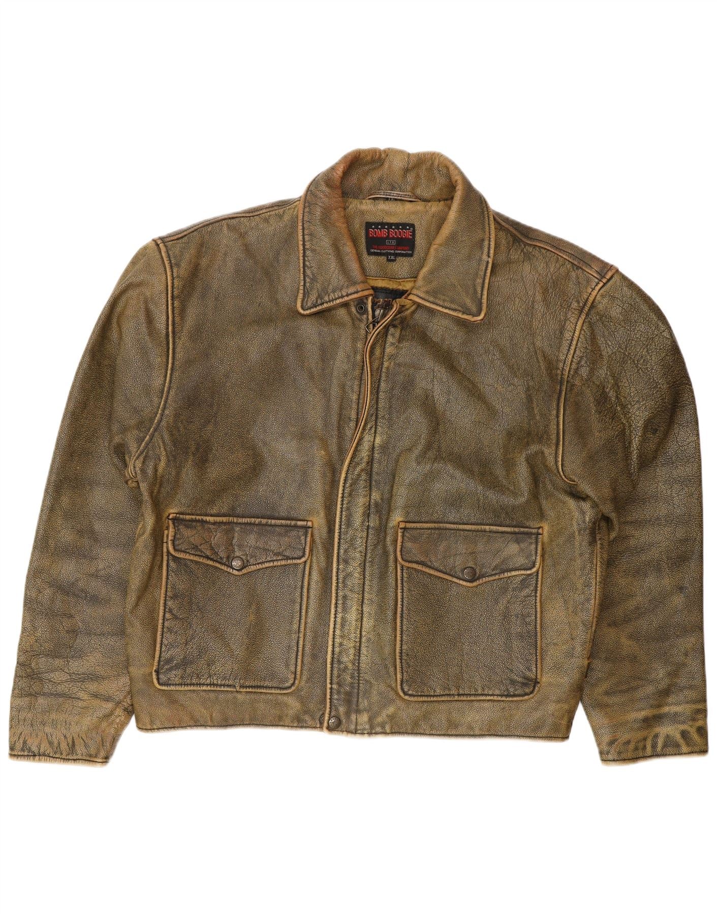 Home > Giacche di pelle vintage > Giacche in pelle marrone vintage > BOMB BOOGIE Giacca in pelle da uomo UK 44 2XL Motociclista in pelle marrone