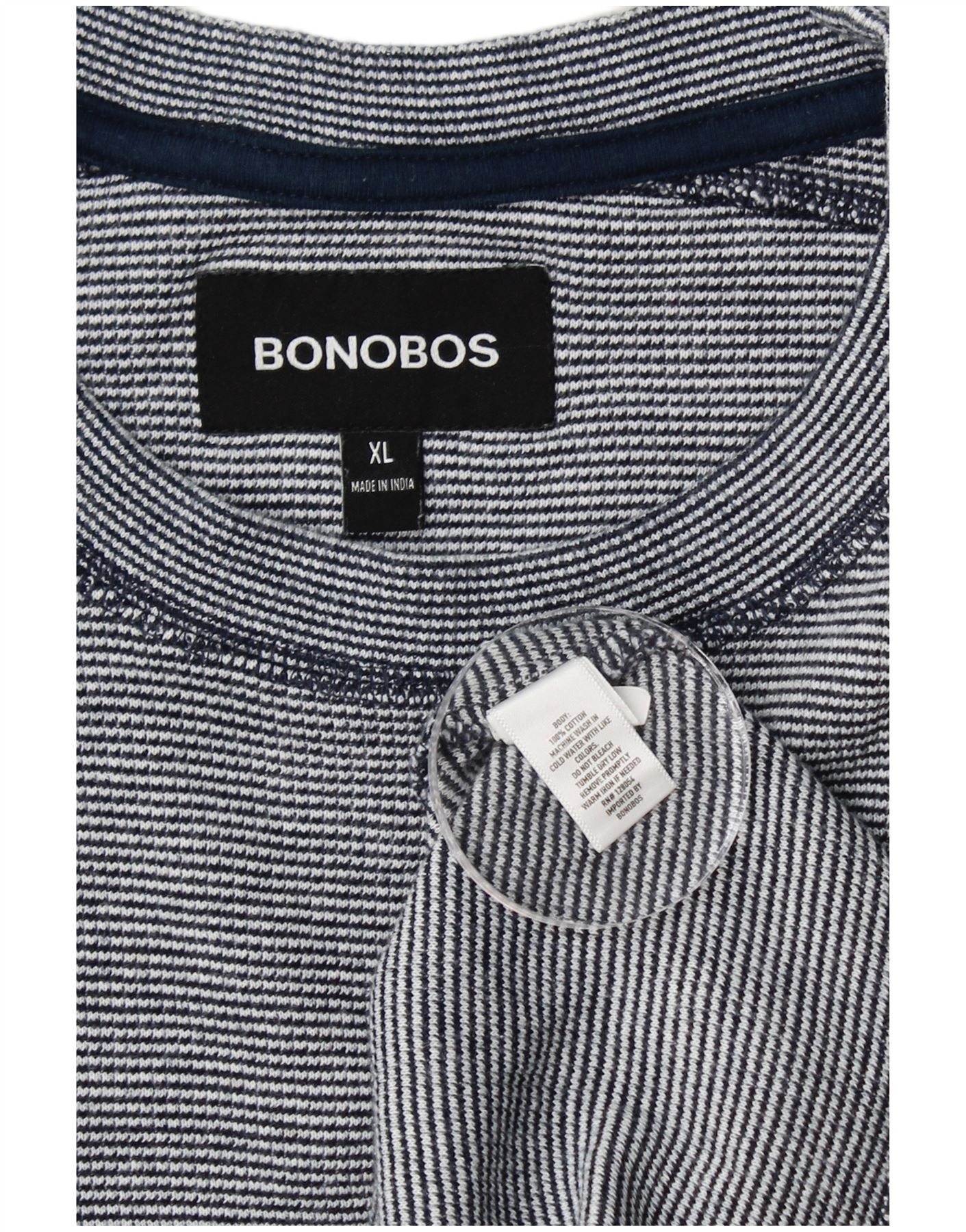 BONOBOS Top da uomo a maniche lunghe XL in cotone gessato blu