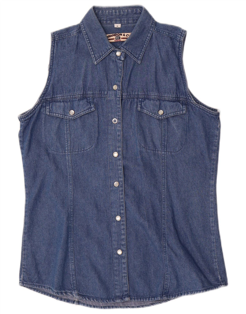 BRANDON & C Womens Sleeveless Denim Shirt UK 12 Medium Blue Cotton