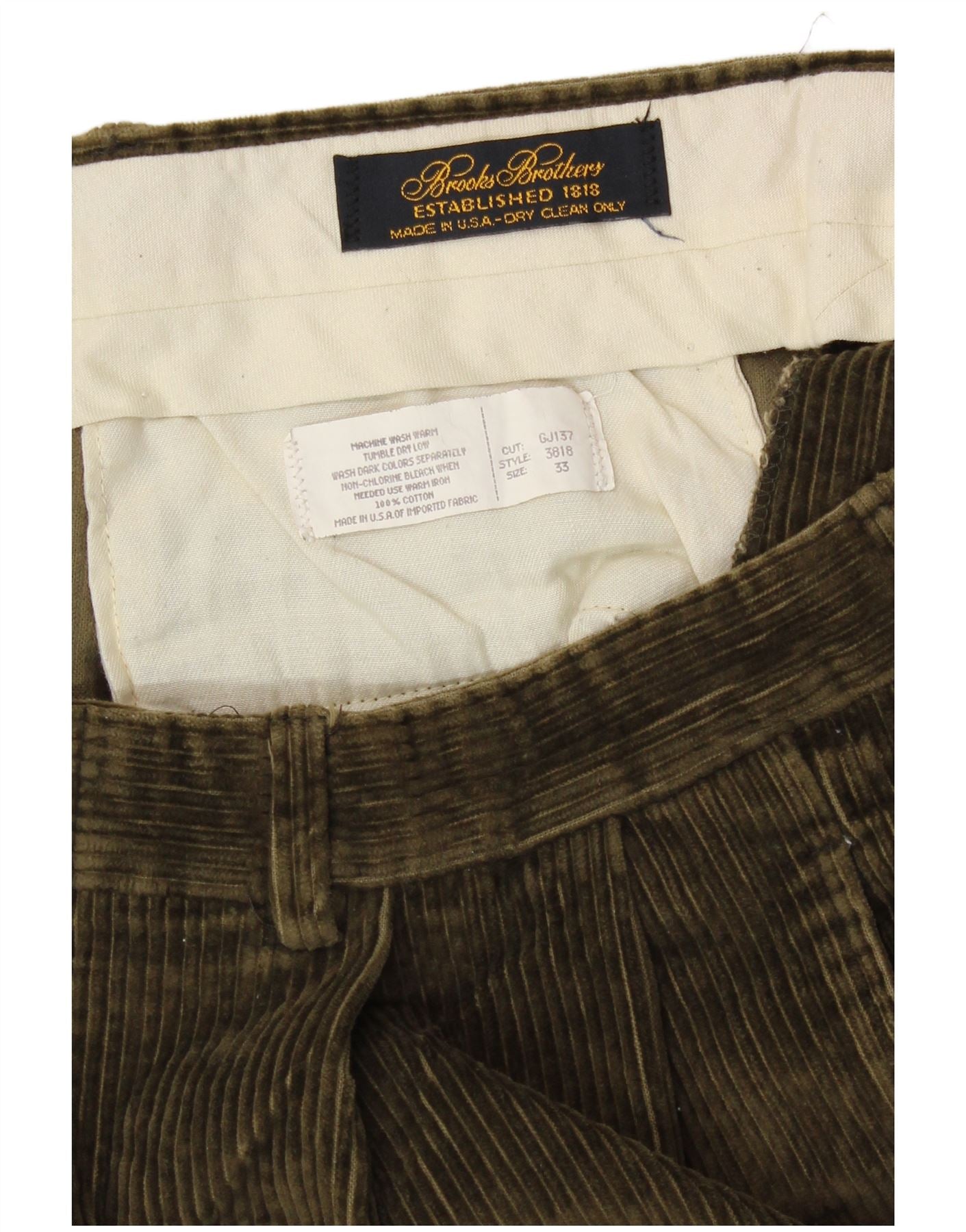 BROOKS BROTHERS Mens Loose Fit Pegged Corduroy Trousers W33 L27 Khaki