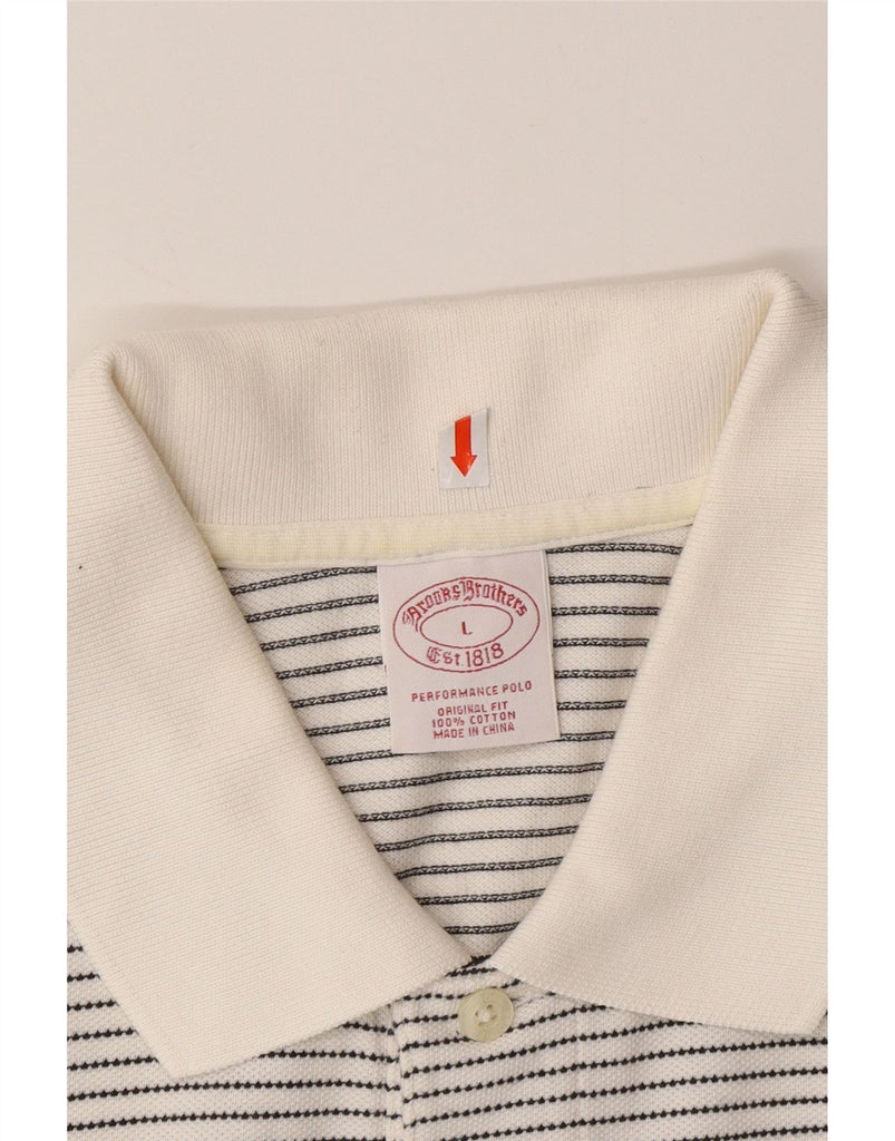 BROOKS BROTHERS Mens Original Fit Polo Shirt Large White Pinstripe Cotton