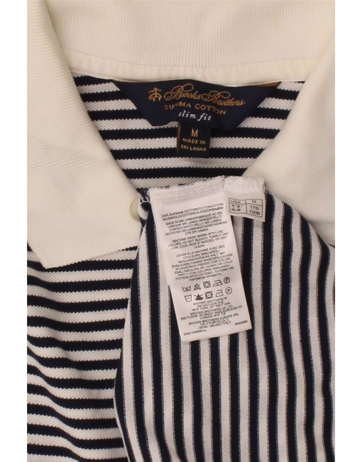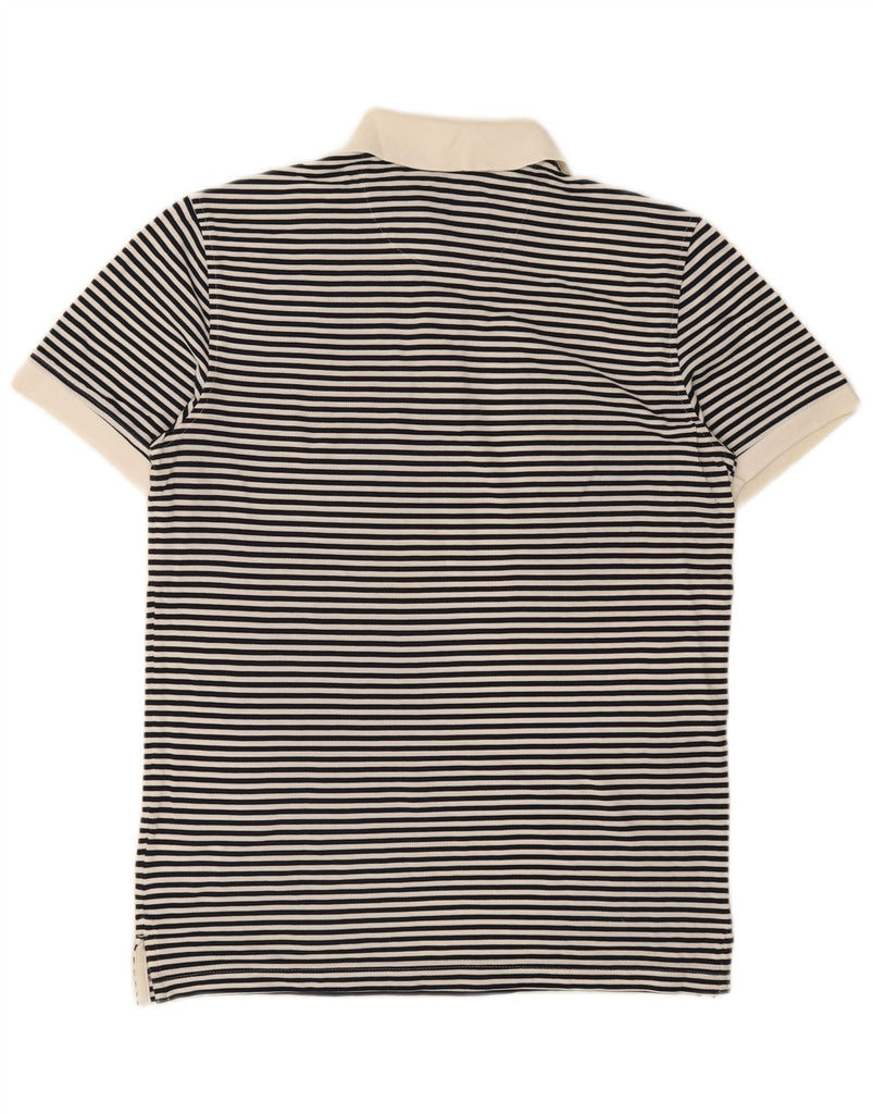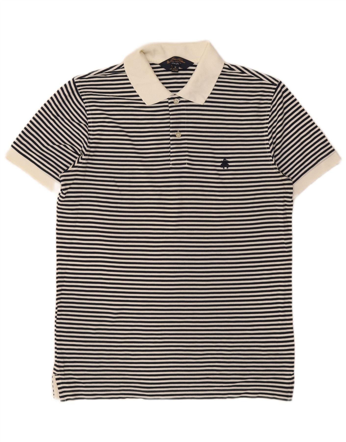 BROOKS BROTHERS Mens Slim Fit Polo Shirt Medium Navy Blue Striped Cotton