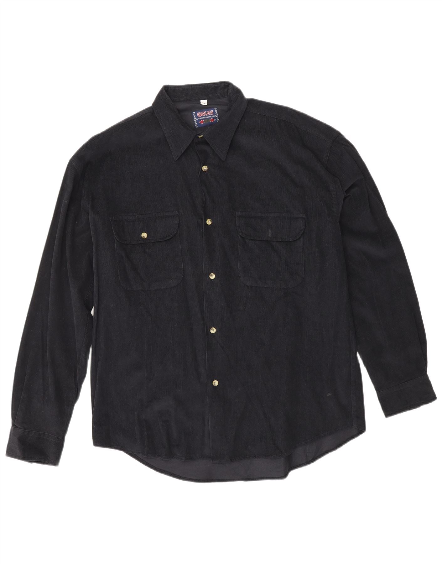 BRUGI Camicia alta da uomo in velluto a coste medio blu navy in acrilico