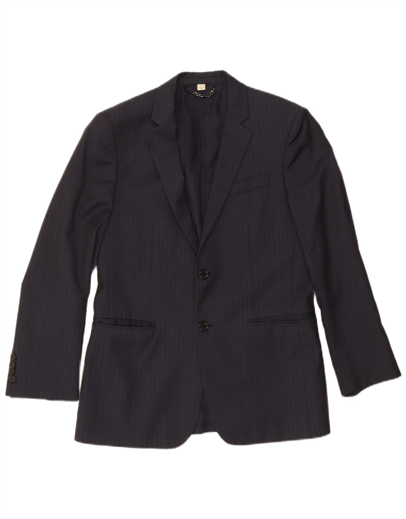 BURBERRY Mens 2 Button Blazer Jacket IT 48 Medium Navy Blue Pinstripe Wool