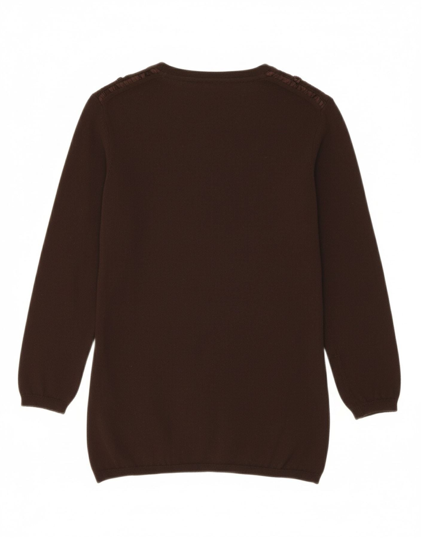 BURBERRY Womens 3/4 Sleeve Crew Neck Jumper Sweater UK 8 Small Brown Wool