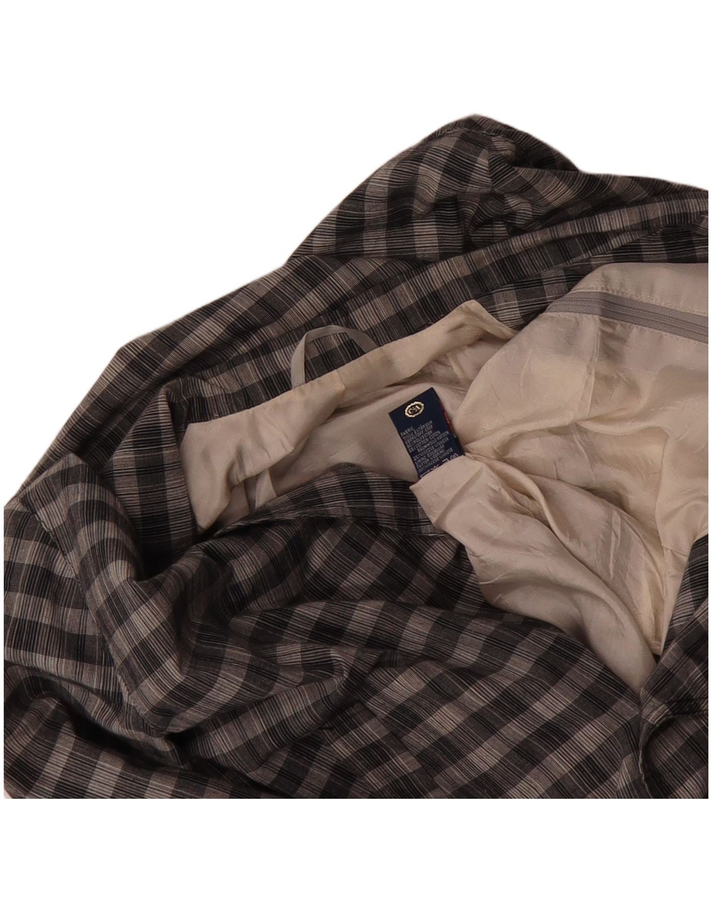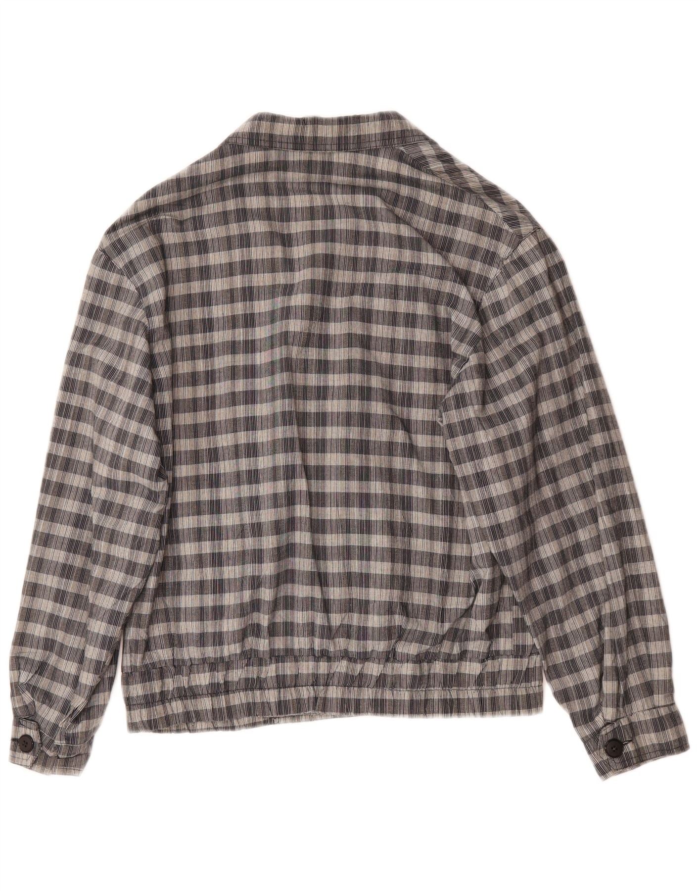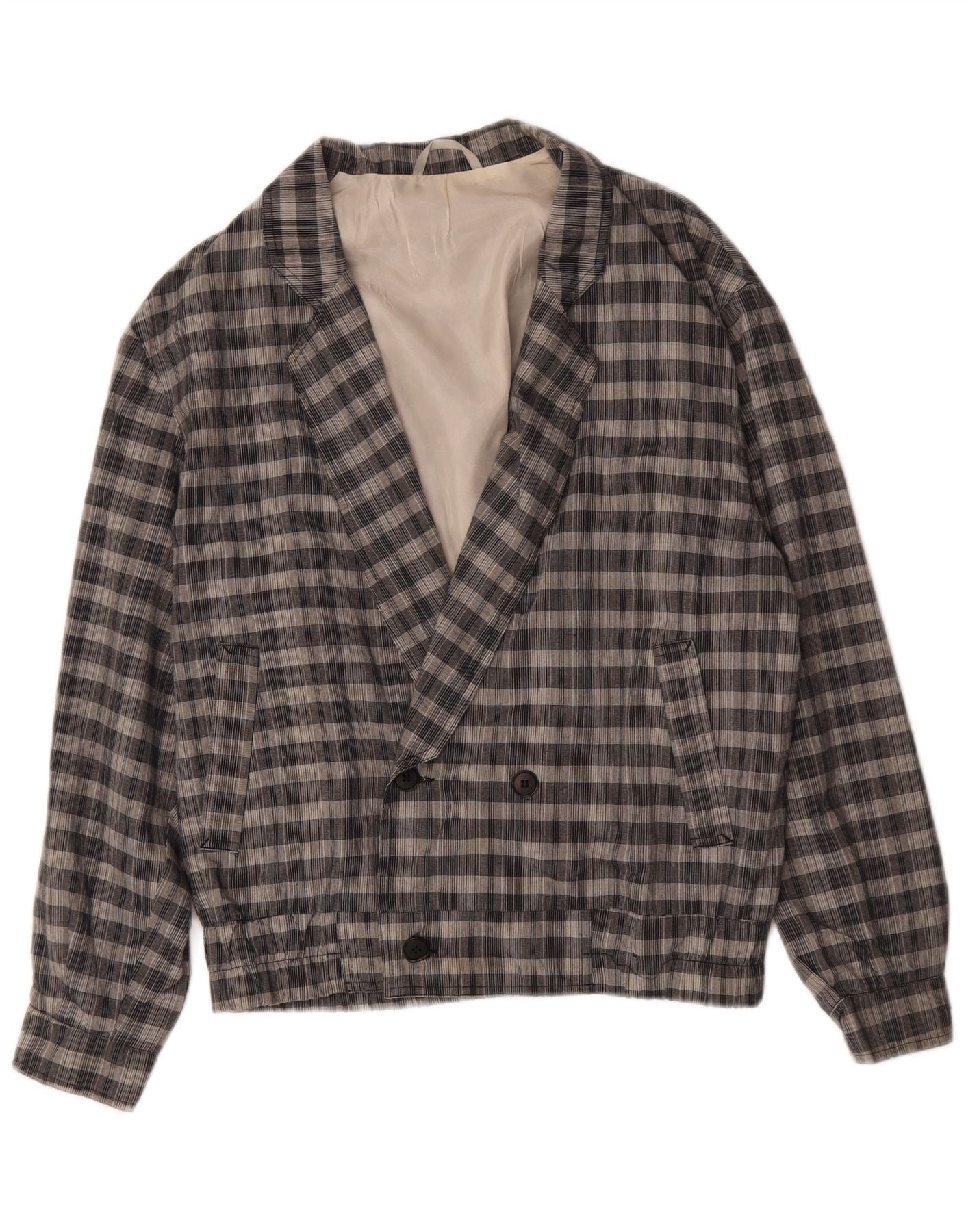 C&A Mens Double Breasted Bomber Jacket UK 40 Large Grey Check Polyester