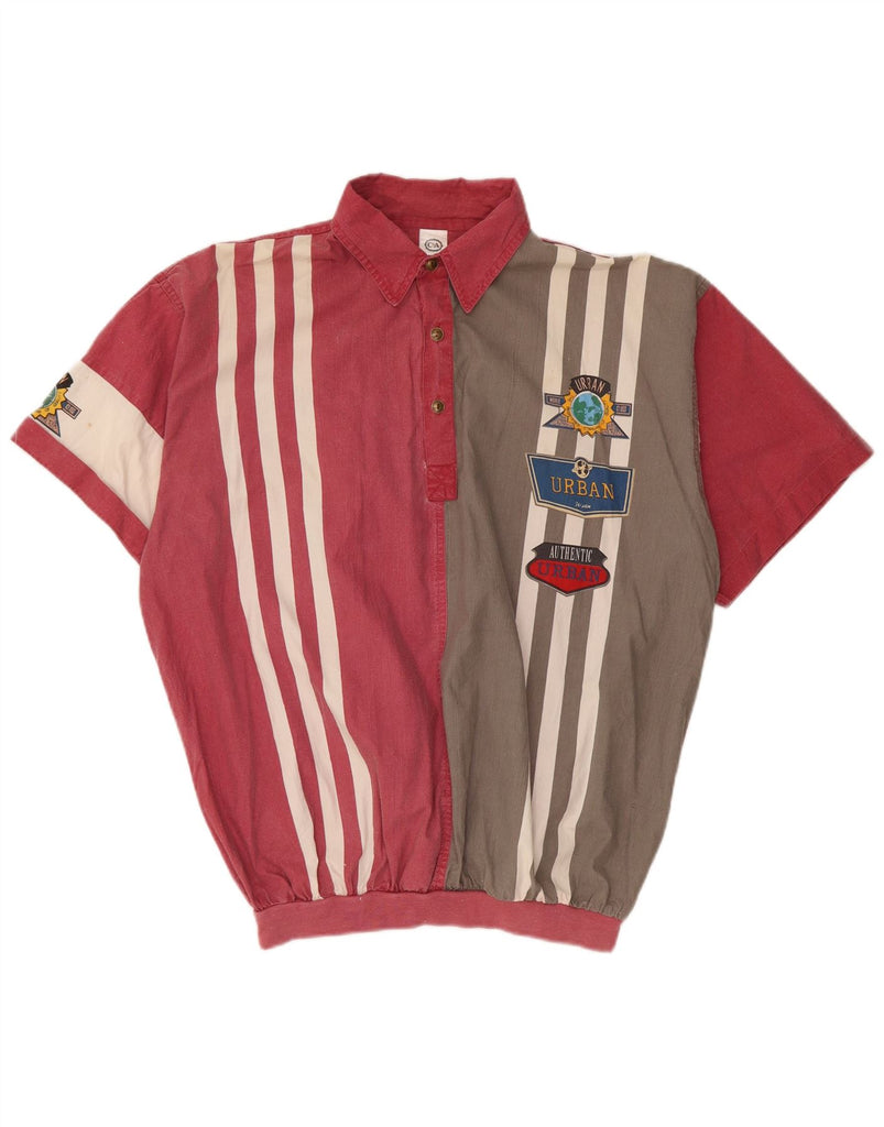 C&A Mens Graphic Short Sleeve Pullover Shirt Medium Red Colourblock Cotton