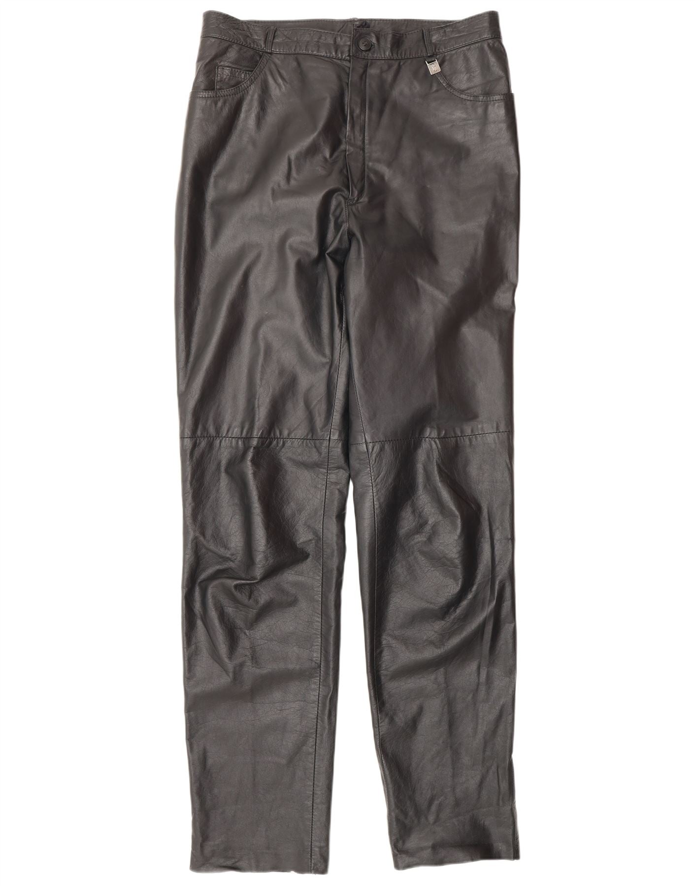 - AI Description: This C&A mens leather biker trousers are crafted from smooth black leather, offering a sleek, robust finish. They feature a regular fit and a button closure for a classic silhouette. Zipped pockets add practical detail and a modern edge. The biker style is enhanced by subtle design elements. A discreet logo provides a signature touch.