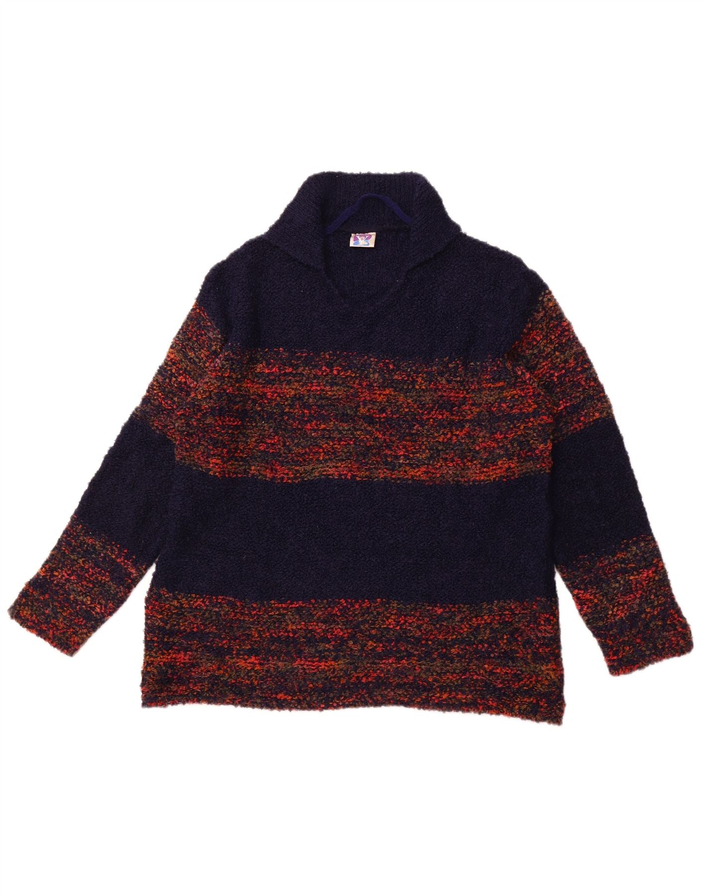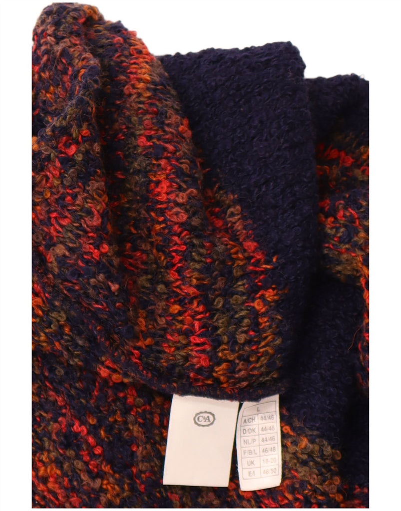 C&A Womens Polo Neck Jumper Sweater UK 18/20 XL Navy Blue Striped Acrylic