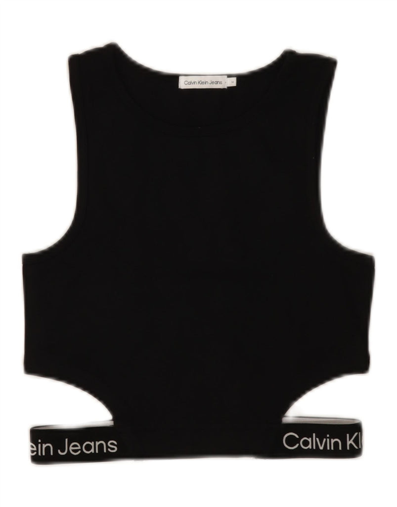 CALVIN KLEIN JEANS Girls Graphic Sport Bra Top 13-14 Years Black Viscose