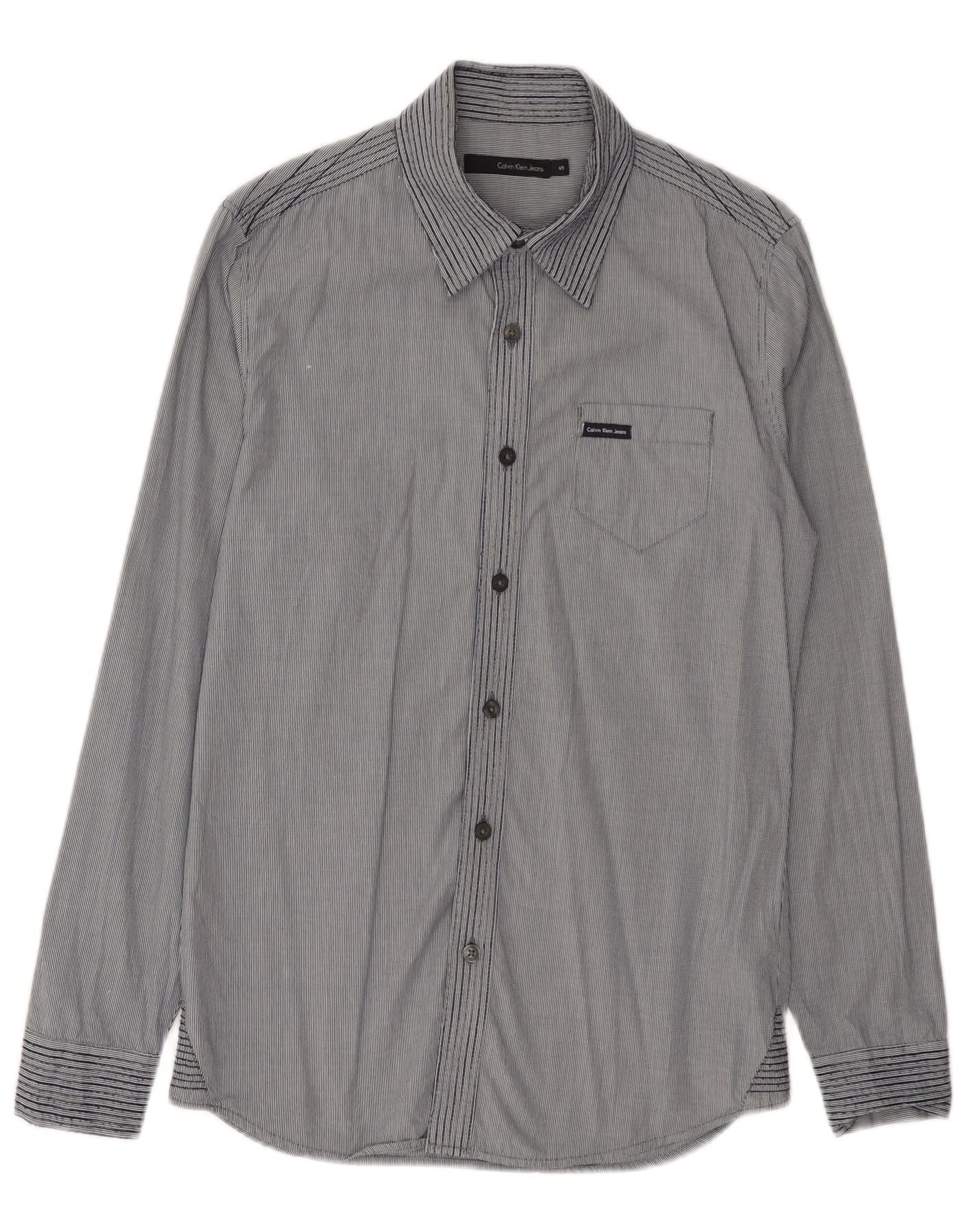- Descrizione dell'IA: Questa camicia da uomo Calvin Klein Jeans è realizzata in cotone intrecciato al 100%, offrendo una sensazione fresca ma confortevole. Presenta un raffinato motivo a strisce blu e bianche, che aggiunge un sottile interesse visivo. Lo scollo con colletto e l'abbottonatura frontale completa forniscono una silhouette classica ed elegante. Finitura maniche lunghe con polsini con bottoni. Un'unica tasca sul petto con un sottile dettaglio del logo ne migliora il design pratico. La vestibilità regolare garantisce una vestibilità comoda.