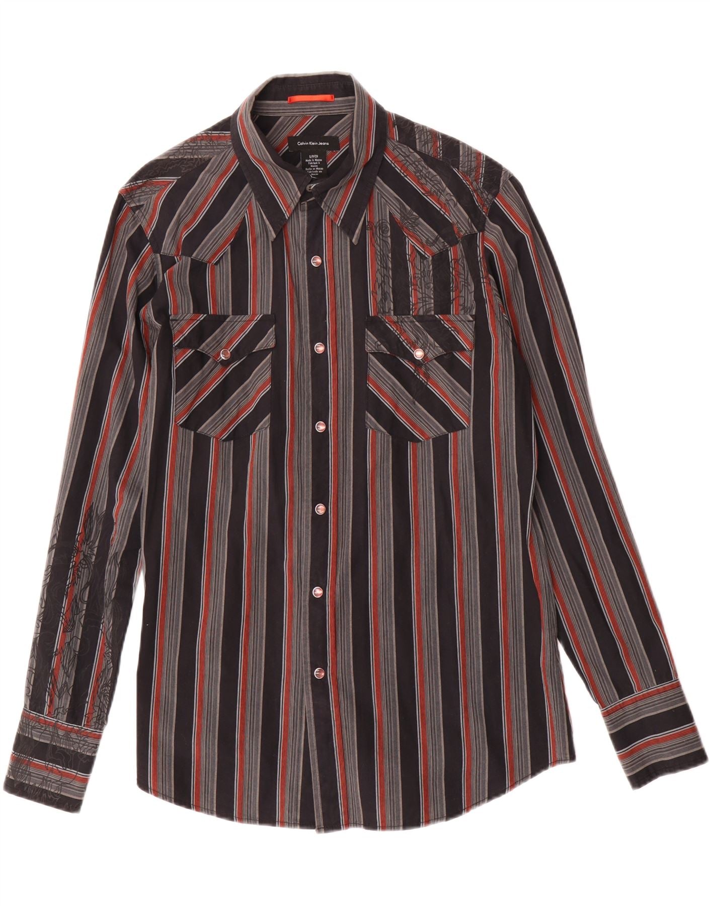 CALVIN KLEIN JEANS Camicia grafica da uomo piccola in cotone a righe nere