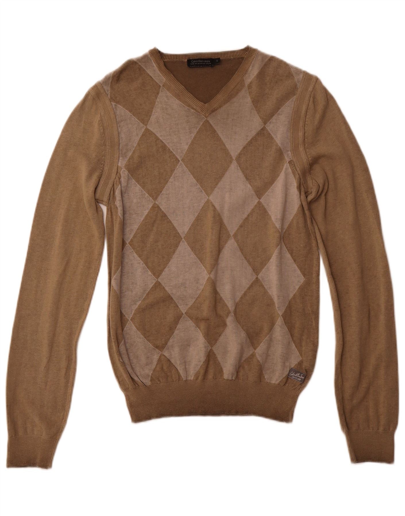 CALVIN KLEIN JEANS Maglione da uomo con scollo a V piccolo marrone a rombi/diamante