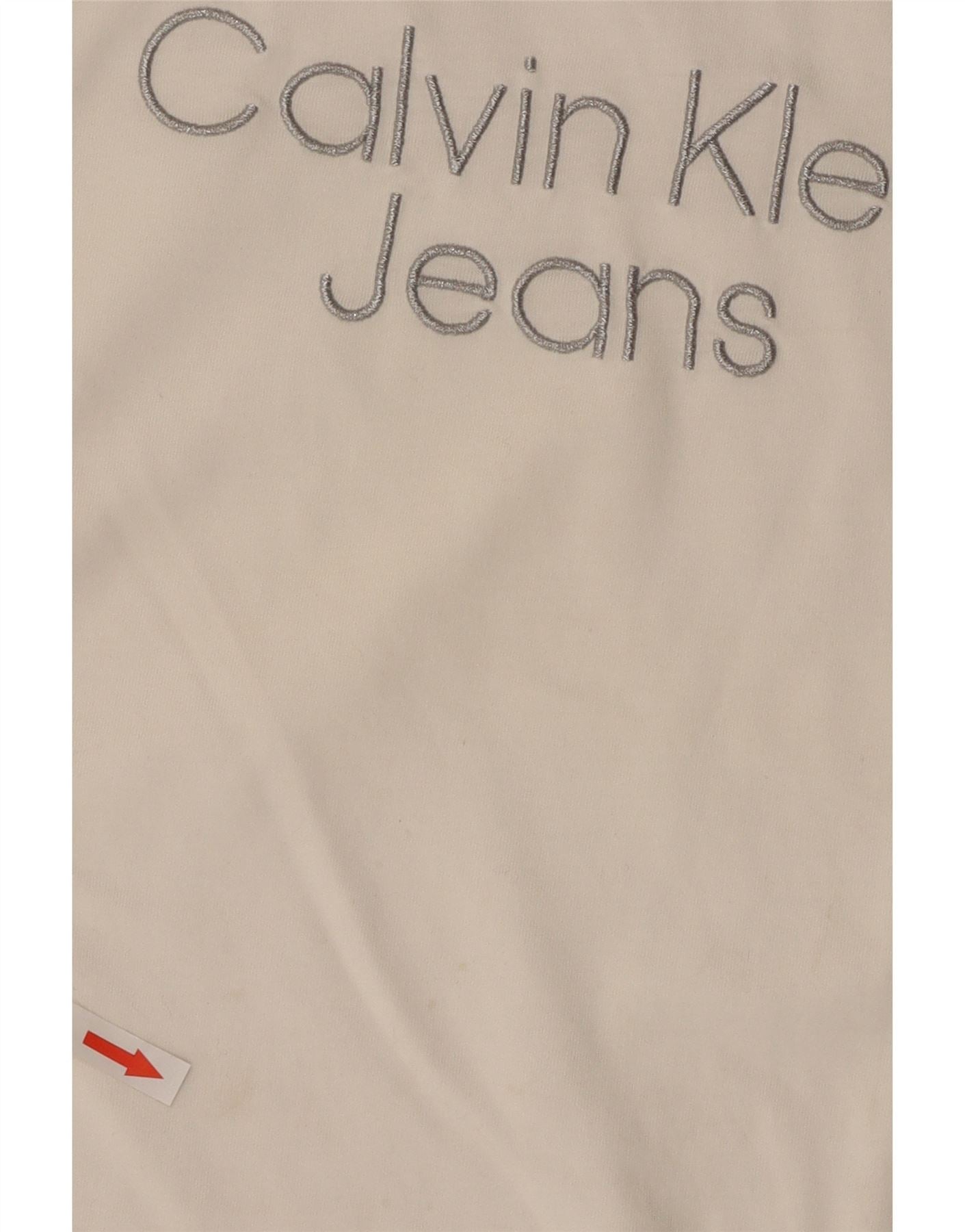 T-shirt grafica corta da donna Calvin Klein Jeans Top UK 14 Medium White