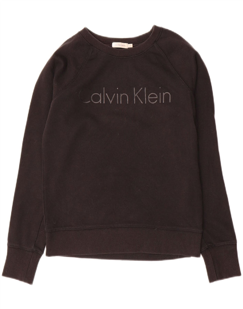 CALVIN KLEIN JEANS Felpa con grafica da donna Maglione UK 10 Small Nero