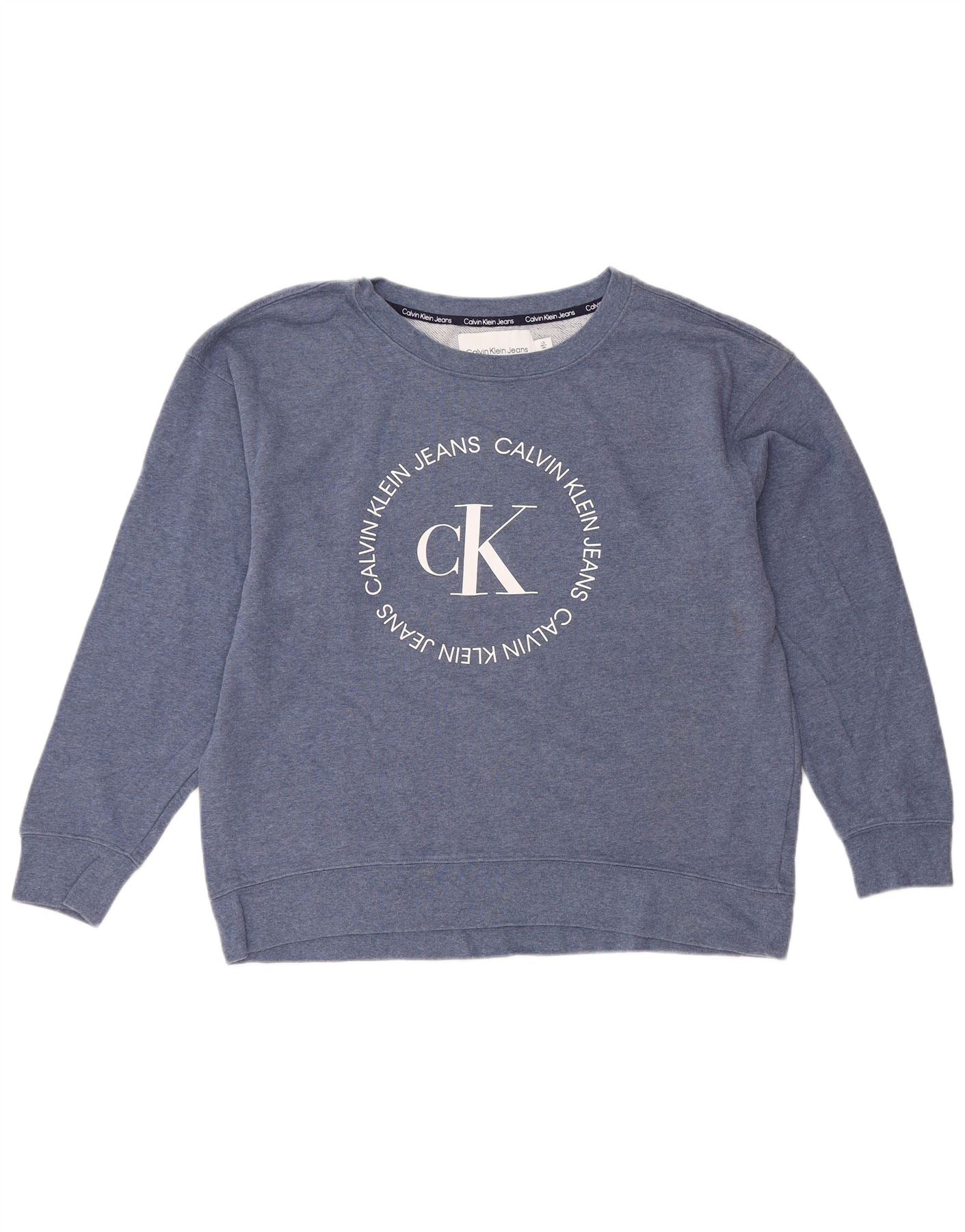 CALVIN KLEIN JEANS Felpa con grafica da donna Maglione UK 16 Large Blu