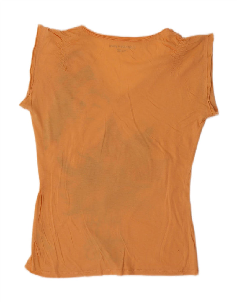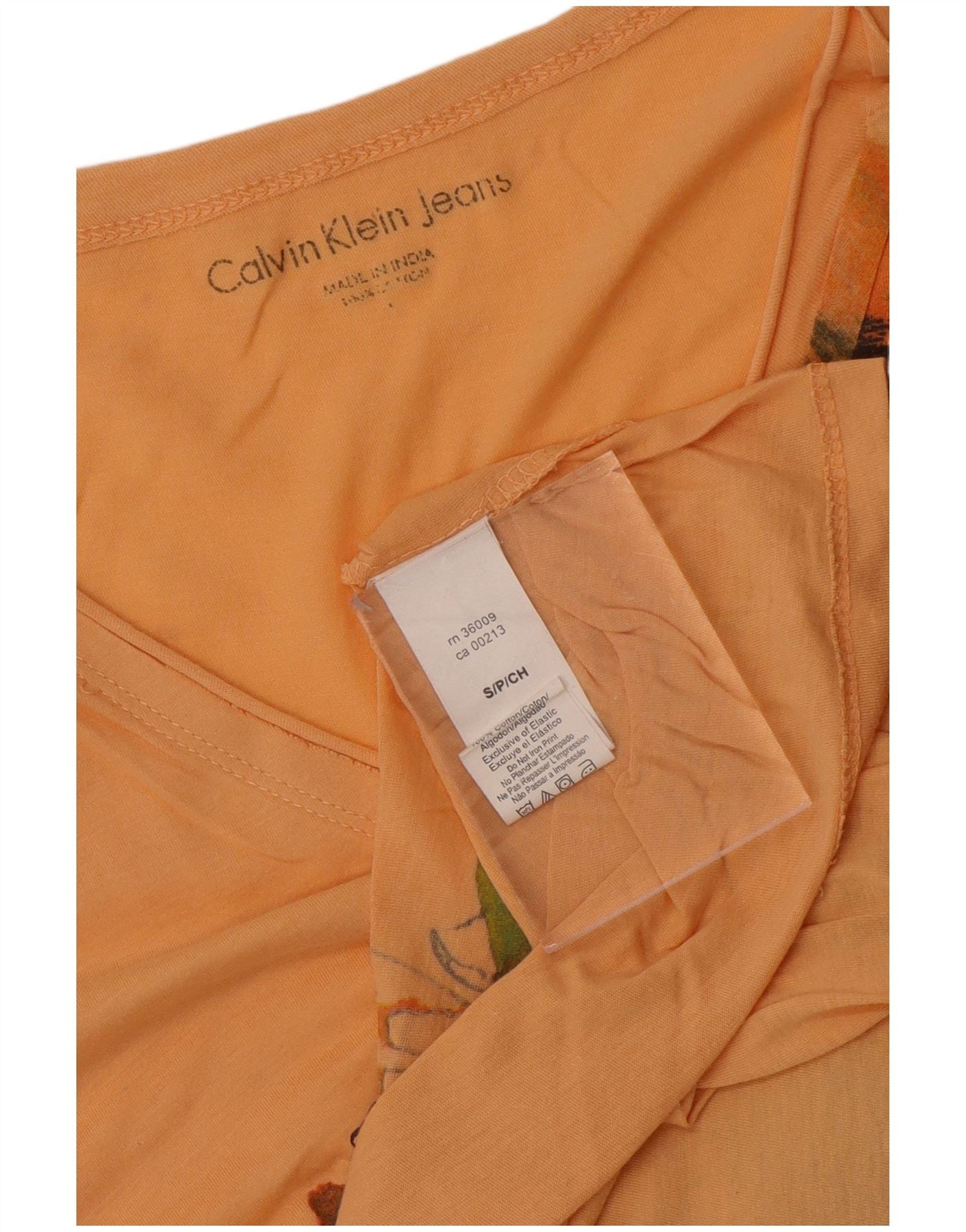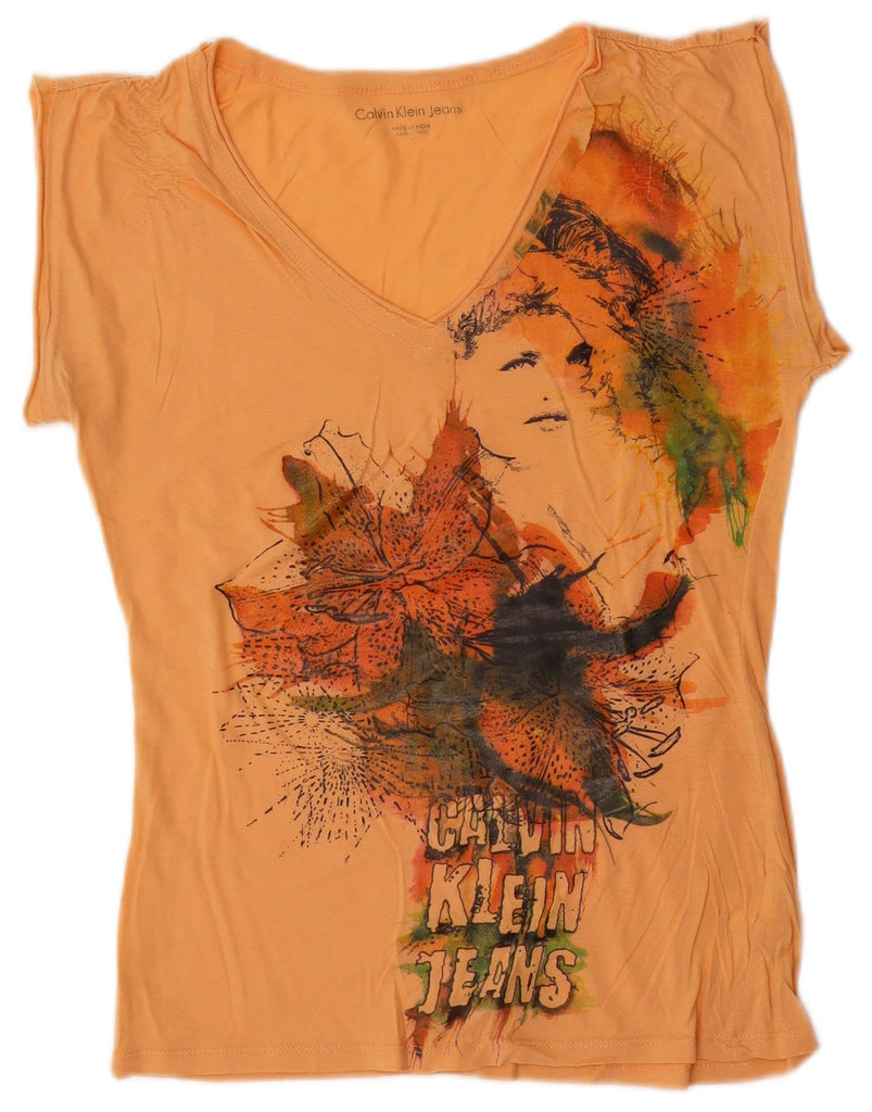 CALVIN KLEIN JEANS T-shirt grafica da donna Top UK 10 Small Arancione Cotone