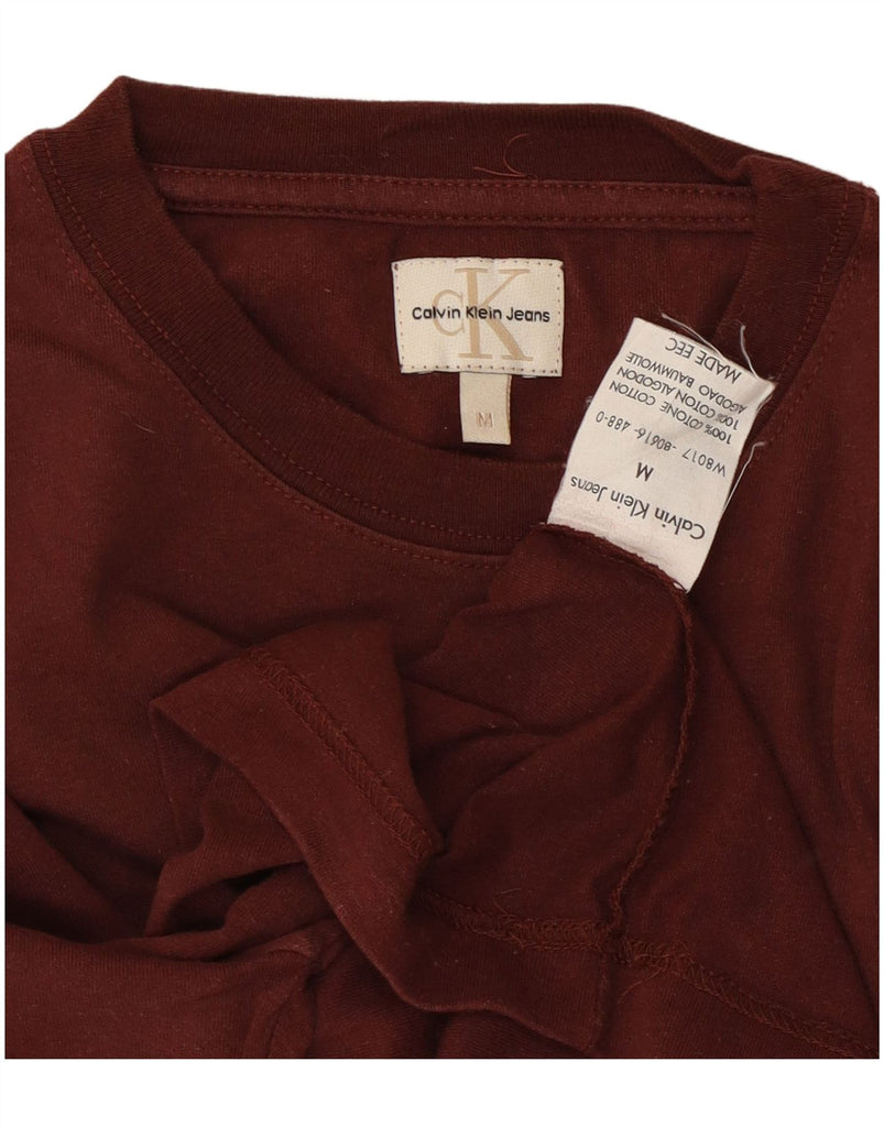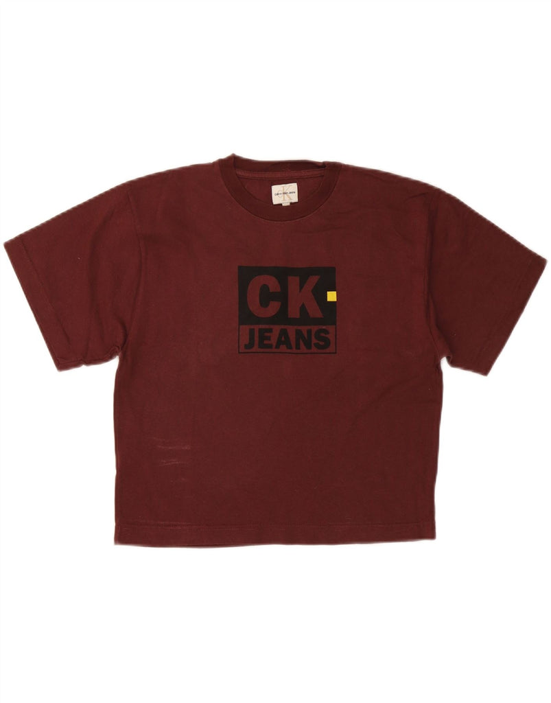 CALVIN KLEIN JEANS Womens Graphic T-Shirt Top UK 14 Medium Burgundy Cotton